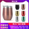 Taza de cáscara de huevo impresa con explosiones transfronterizas, taza de vino tinto de acero inoxidable 304, taza de huevo en forma de U al vacío de 12 oz con tapa, al por mayor
