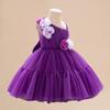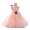 Vestido de princesa para niña de un año, vestido de niña de flores con hombros descubiertos y calcomanía de malla, novedad de 2024