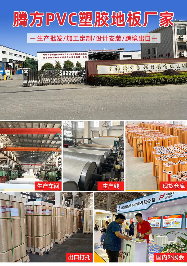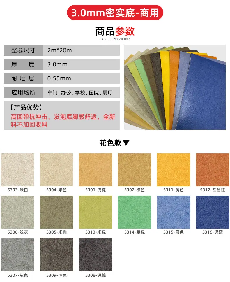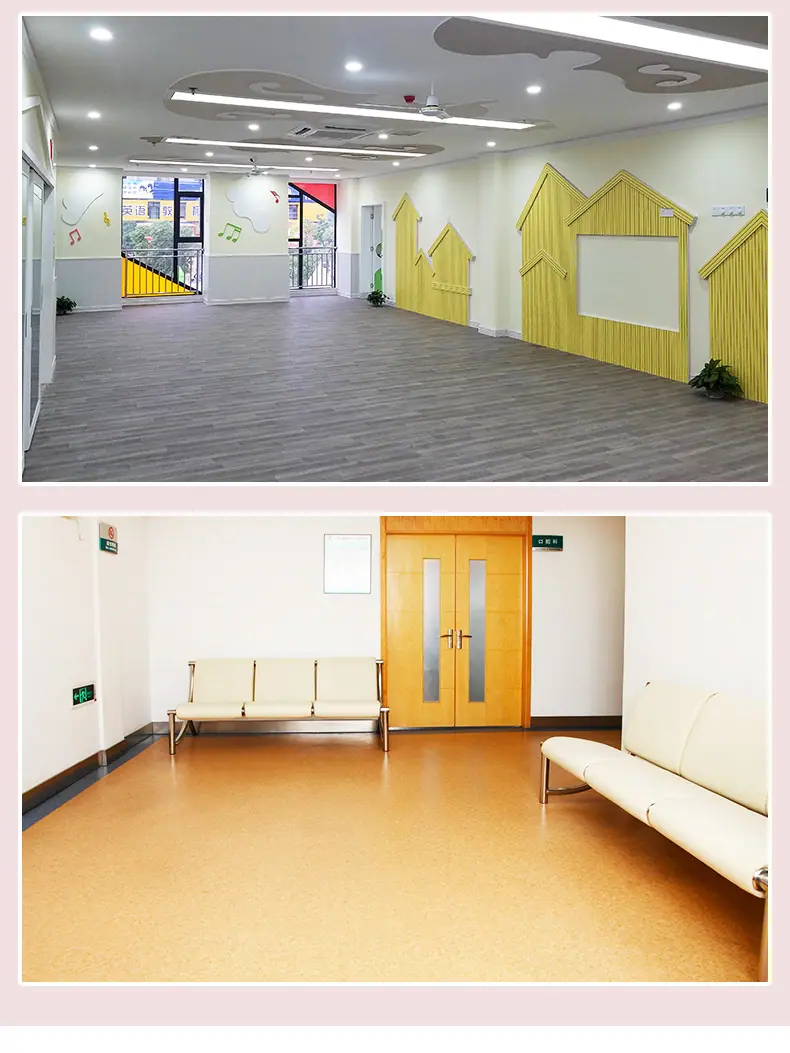 Producción de pegamento para pisos de plástico PVC para escuelas, hospitales y salas de exposiciones de 3 mm de espesor, antideslizante, resistente al desgaste y comercial.