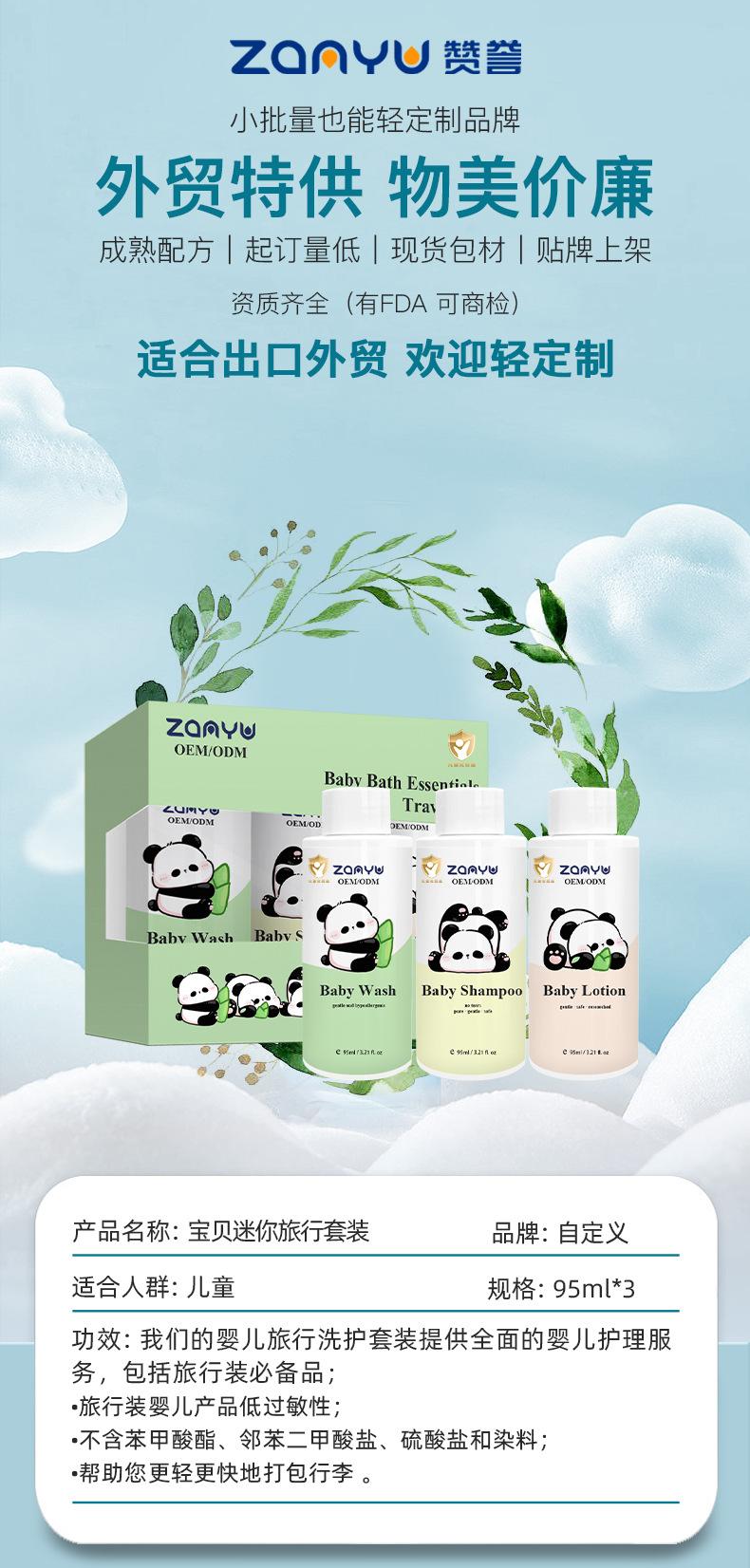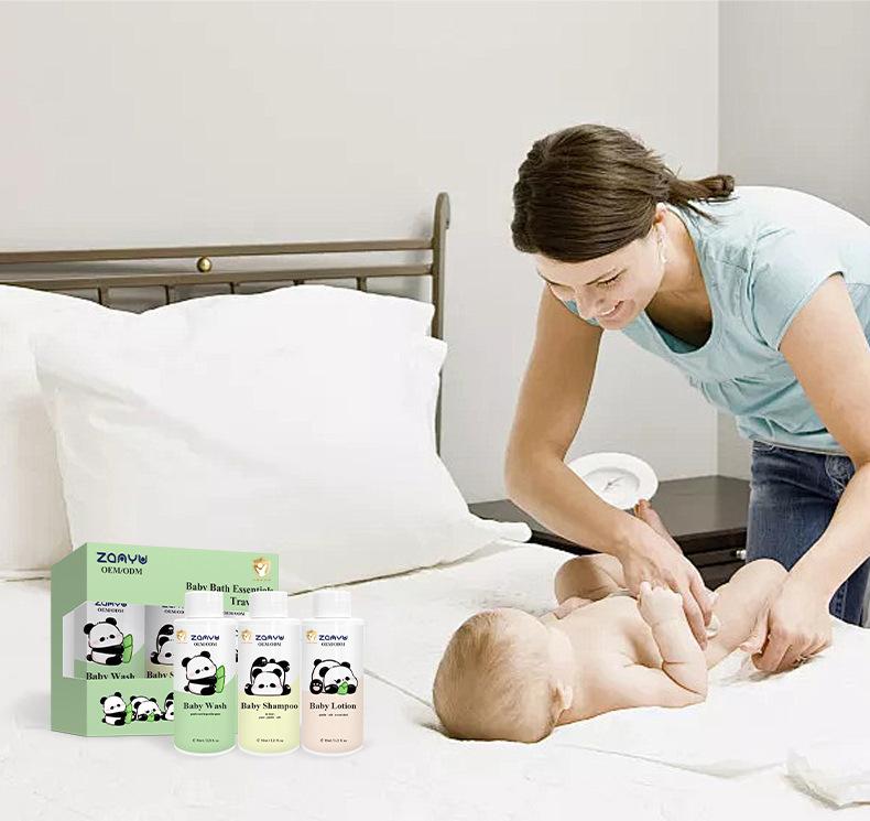 Set de Viaje Personalizado de Tres Piezas para el Cuidado del Bebé, Muestras de Gel de Ducha, Champú, Loción Corporal, Exclusivo para Exportación