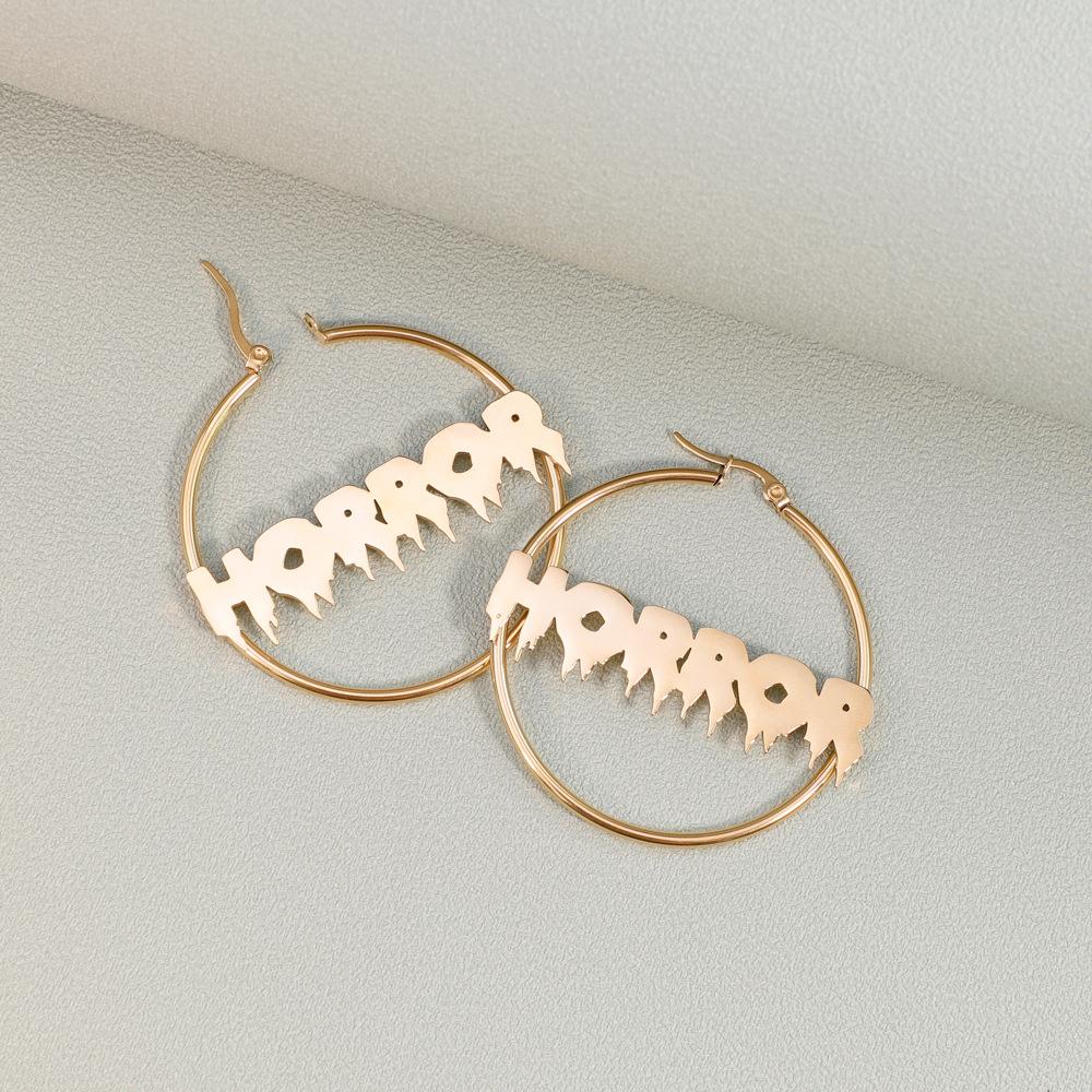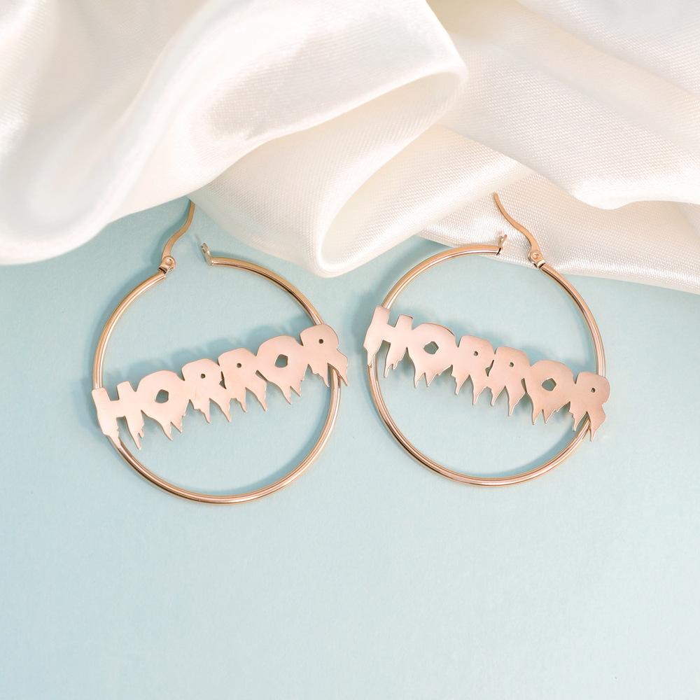 Compra Aretes Redondos de Letra Ancha Personalizados de Terror Transfronterizo Europeo y Americano para Mujer con Nombres en Inglés Se Pueden Personalizar Aretes y Aretes Tendencia de Joyería al por mayor en Joom.pro
