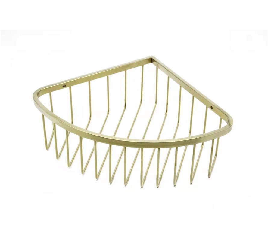 Estante de almacenamiento para baño Kaiping Youjia de acero inoxidable 304 en oro cepillado, cesta triangular para baño, cesta de malla esquinera 0500