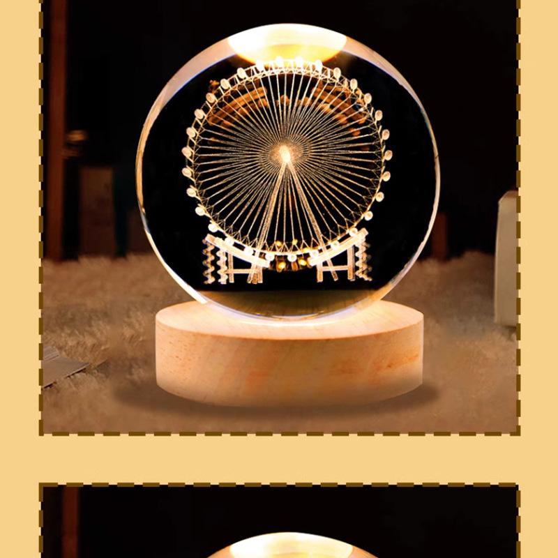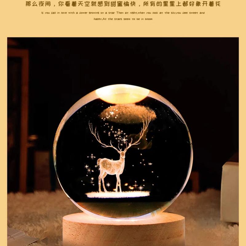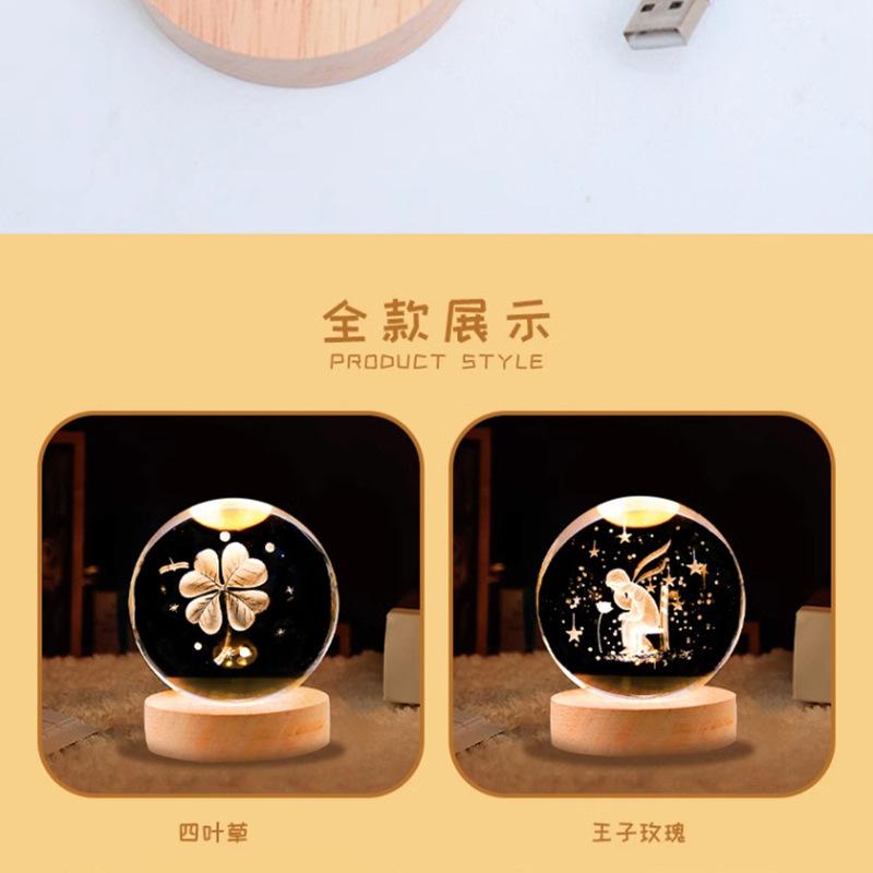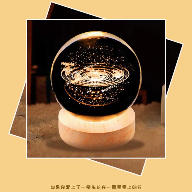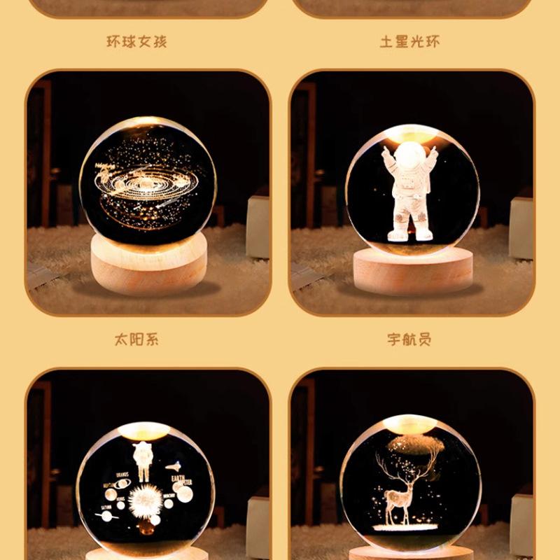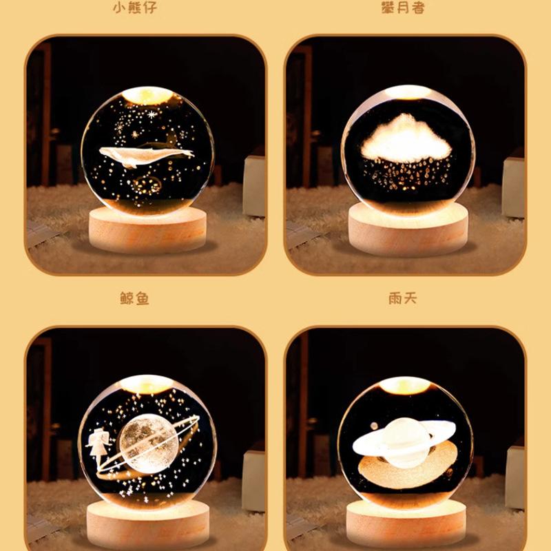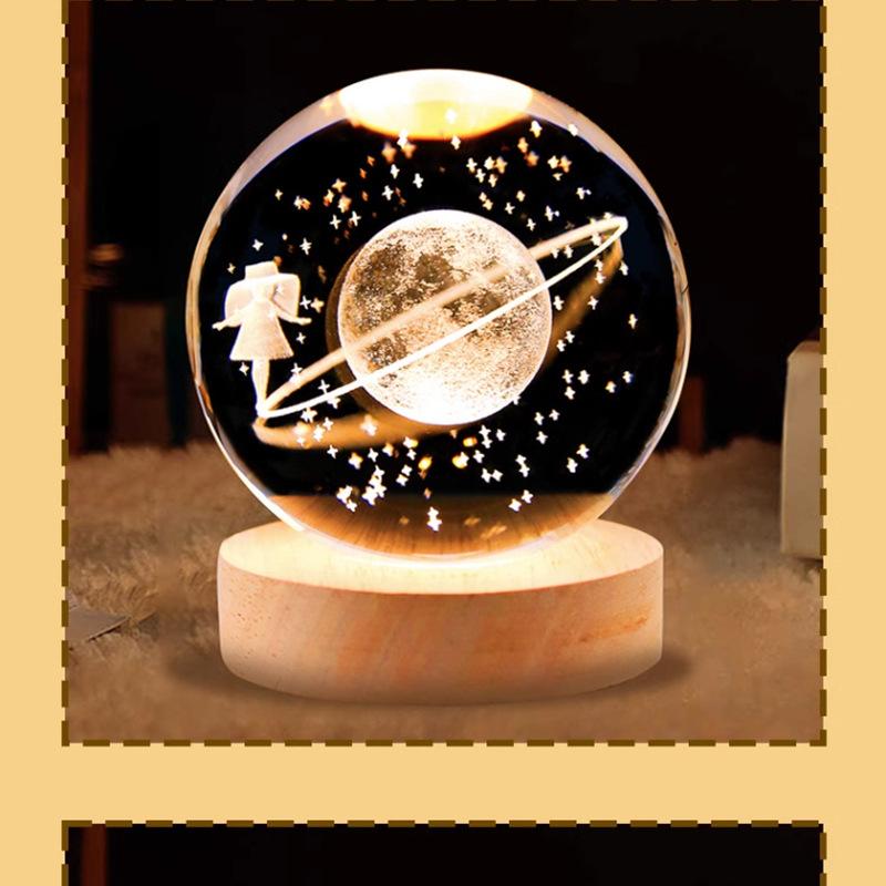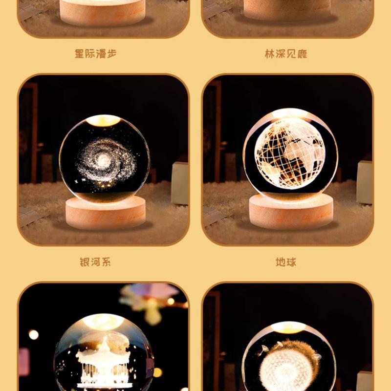 Bola de cristal patrón 3D logotipo con letras luminoso atmósfera galaxia luz nocturna pequeño regalo creativo adornos tallados bola de cristal
