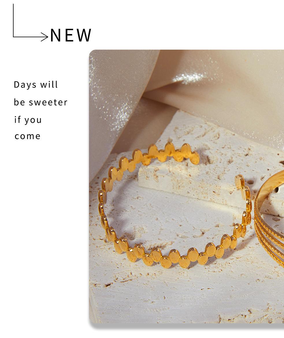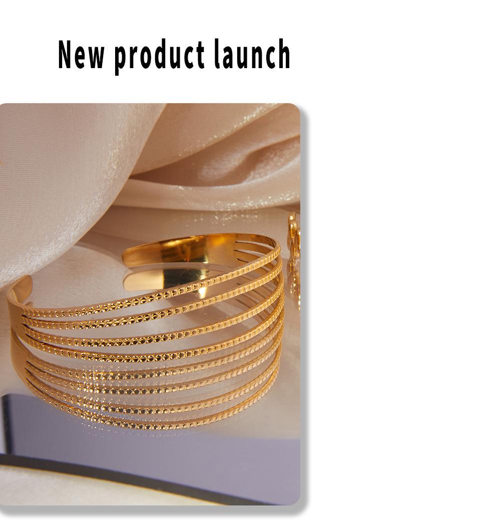 Pulsera francesa retro ins net red nueva geométrica abierta pulsera de acero de titanio chapada en oro de 18 quilates sentido del diseño para mujer al por mayor