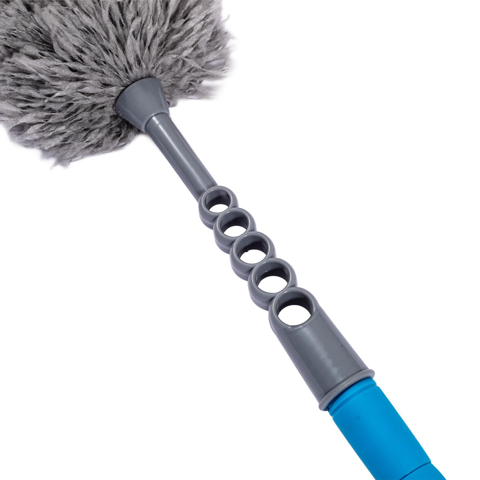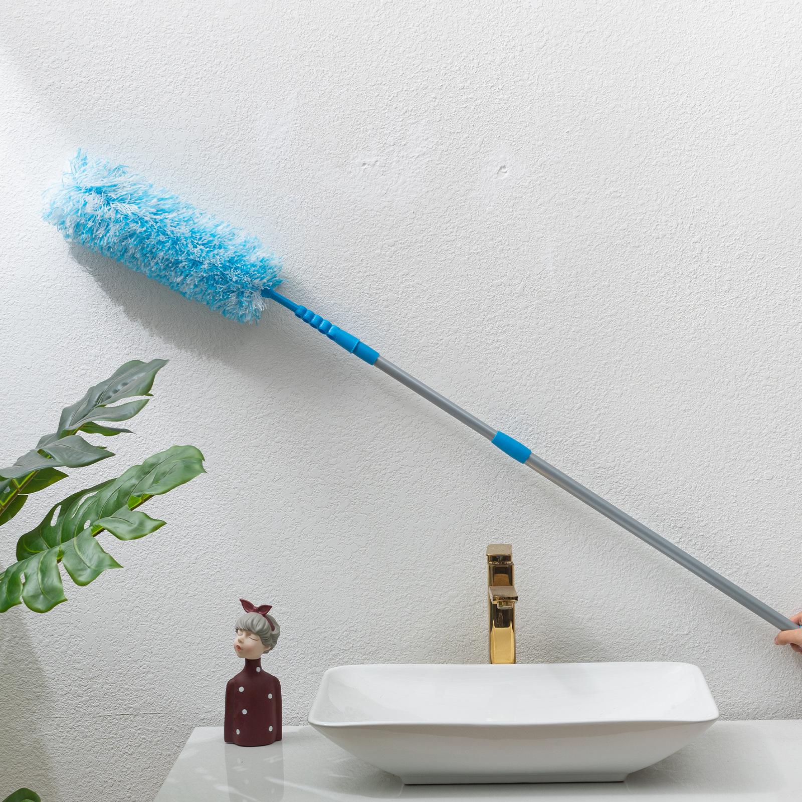 Plumero telescópico de dos secciones, flexible y desmontable, de doble propósito, lavable, sin pelusa, para limpieza del hogar.