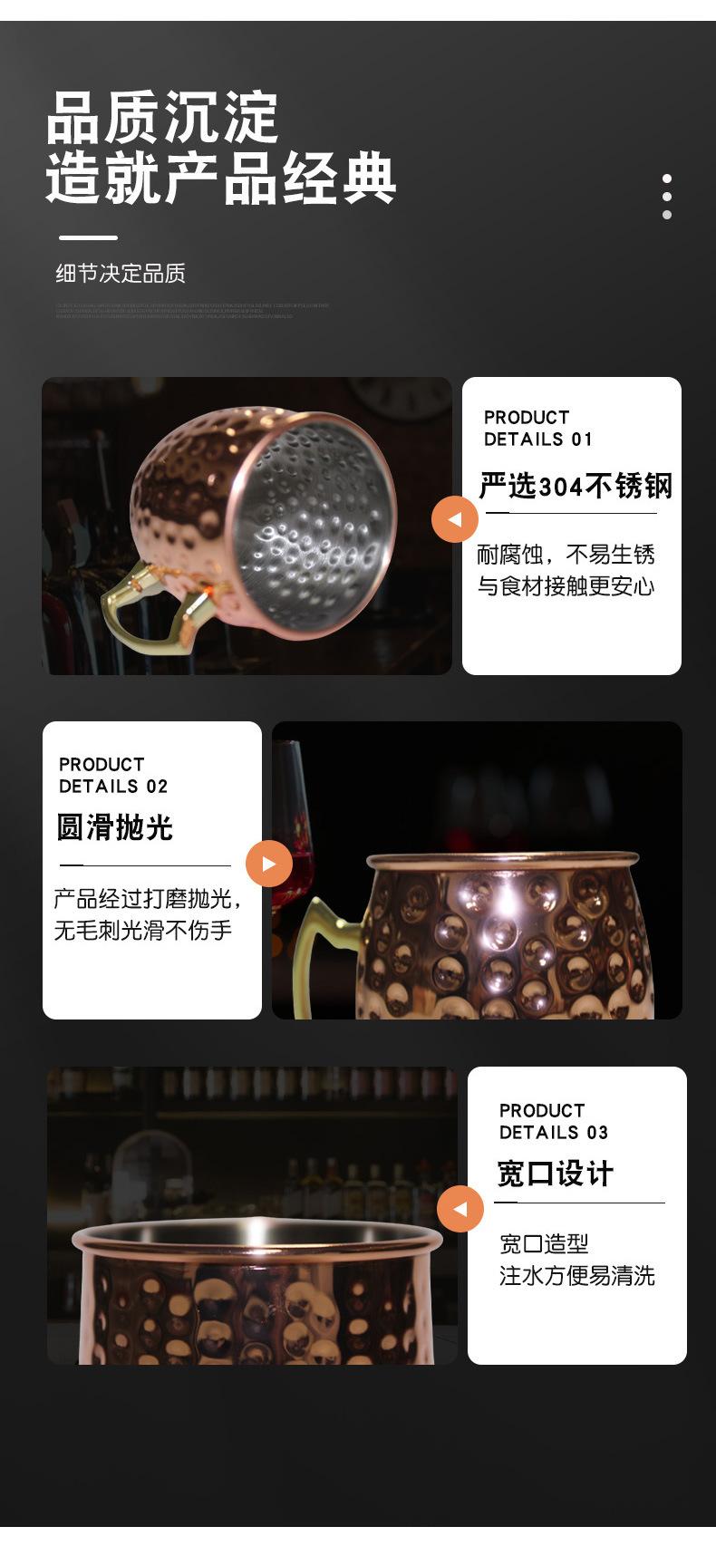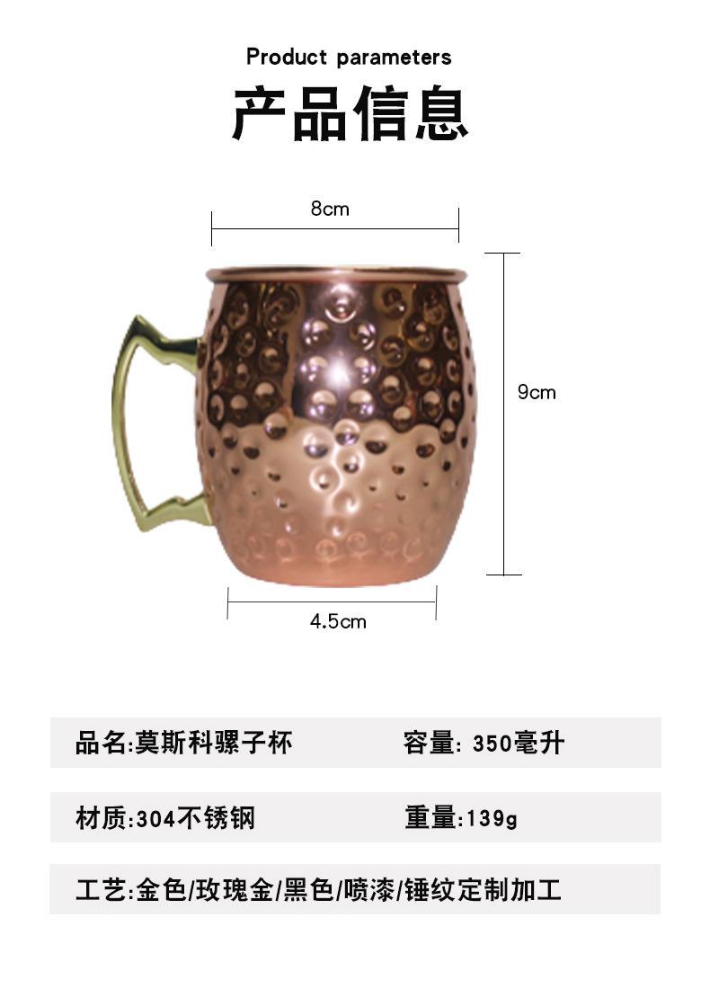 Taza de Tambor con Punta de Martillo de 350 ml Taza de Acero Inoxidable Chapada en Cobre Taza Moscow Mule Taza de Cerveza de Acero Inoxidable Galvanizado