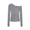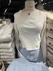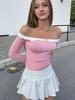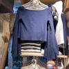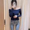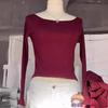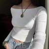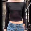 Camiseta de manga larga para mujer, estilo americano, con cuello de una sola palabra, de algodón, estilo BM, ajustada, agradable para la piel, con hombros descubiertos y que combina con todo.