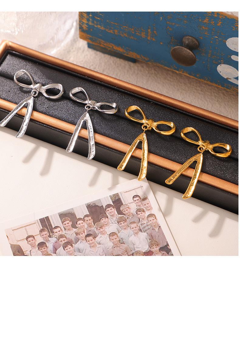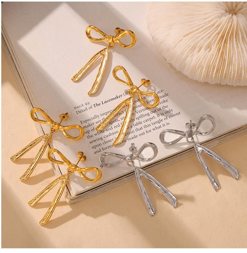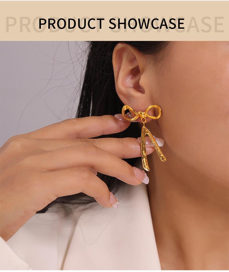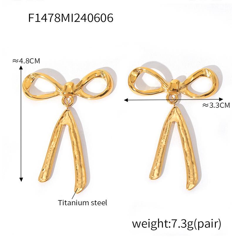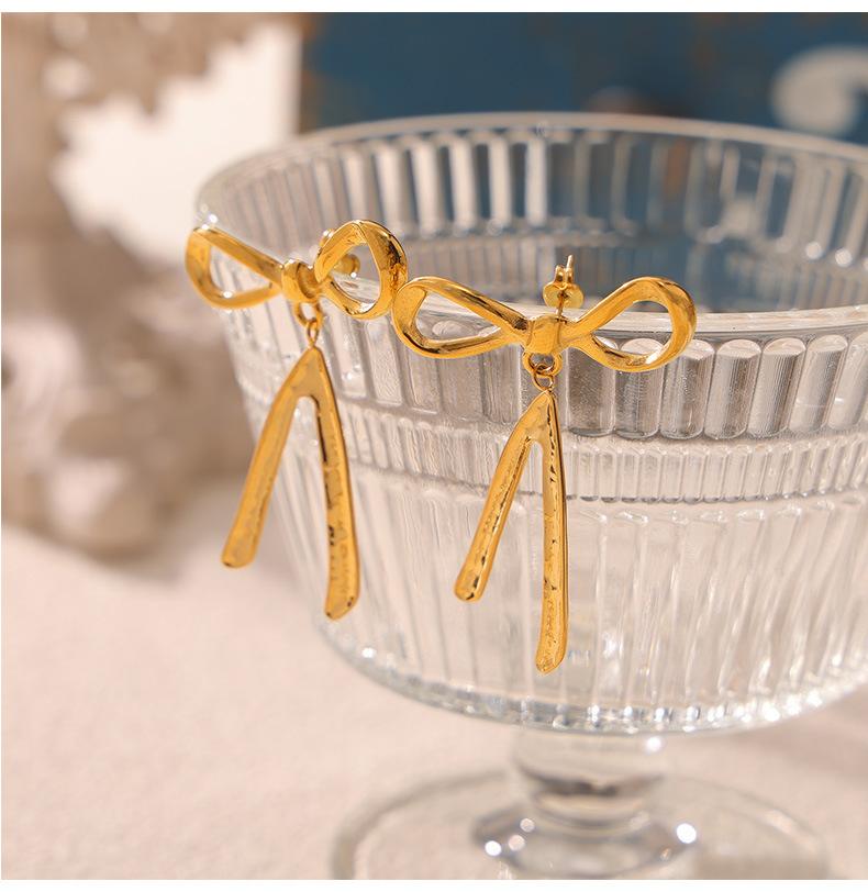 Pendientes de lazo de estilo chic, modernos, sencillos y combinables con todo, estilo casual, estilo clásico, pendientes de acero de titanio chapados en oro.