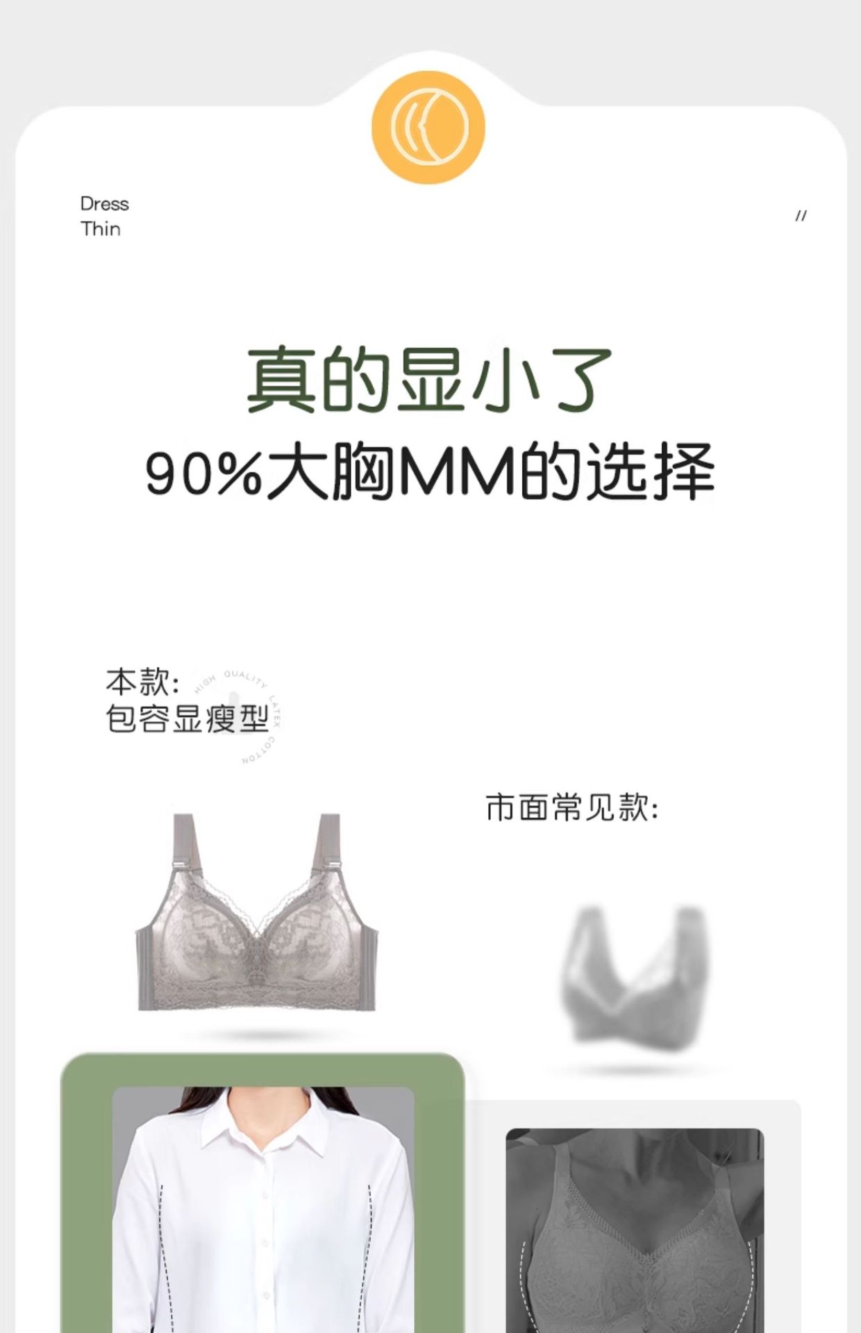 Sujetador fino de verano para pecho grande, ropa interior pequeña y adelgazante para mujer, sin aros de acero, transpirable y anticaída.