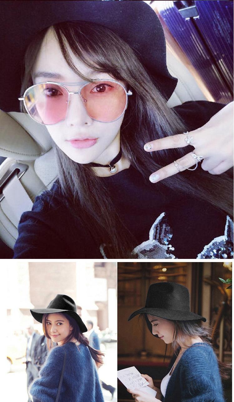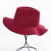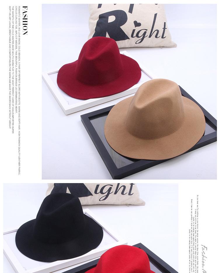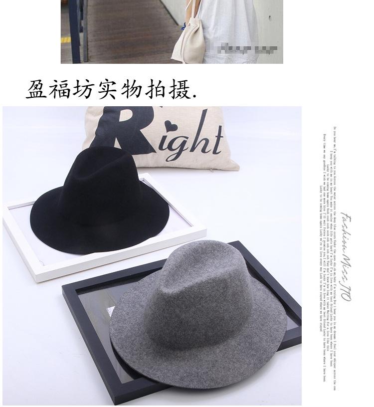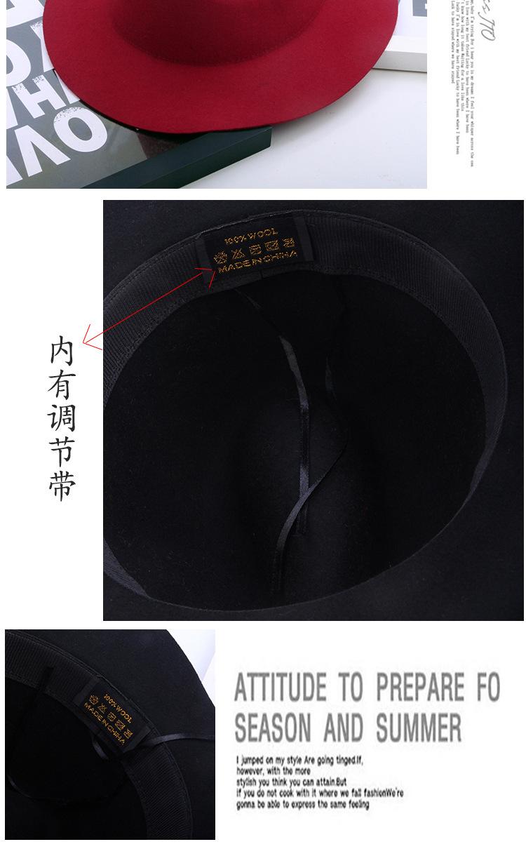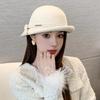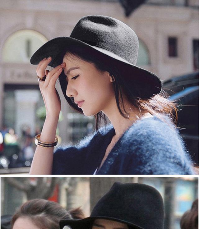 Sombrero de moda de estilo coreano para mujer, de lana con borde ondulado, estilo británico, estilo jazz, estilo retro, de ala grande, de color liso, con placa ligera, para otoño e invierno.