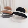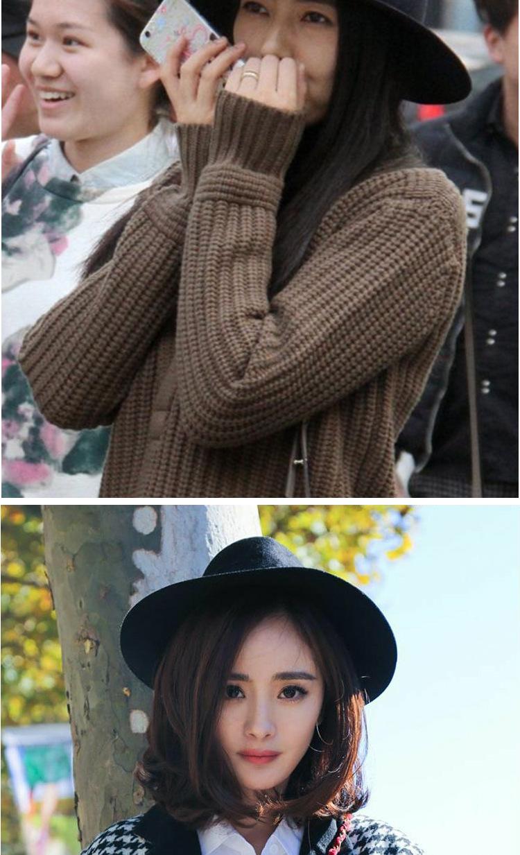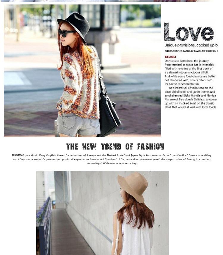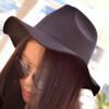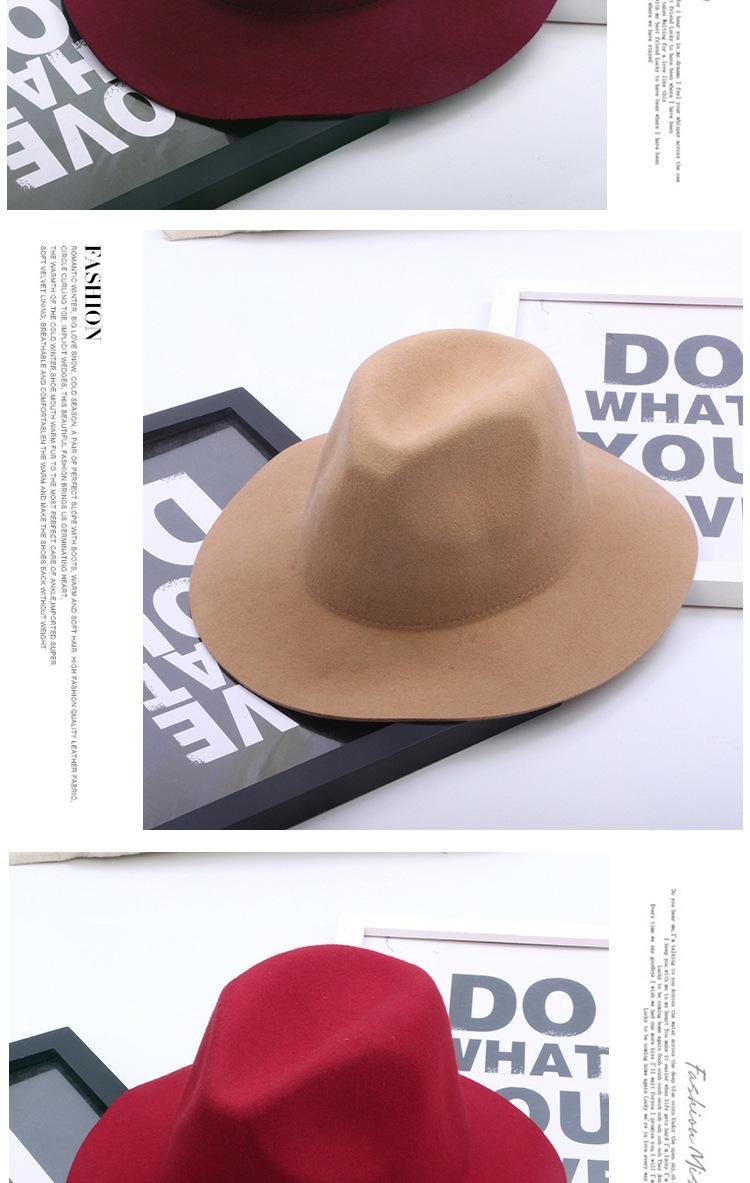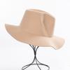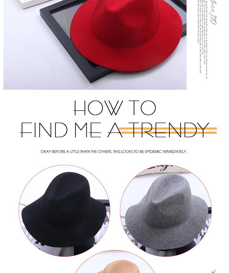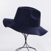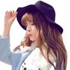 Sombrero de moda de estilo coreano para mujer, de lana con borde ondulado, estilo británico, estilo jazz, estilo retro, de ala grande, de color liso, con placa ligera, para otoño e invierno.