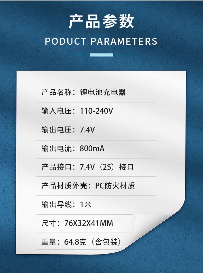Cargador simple de batería de litio de 7,4 V para control remoto de aviones, modelos de automóviles, cargador de 3 pines con protección contra sobrecarga de equilibrio.