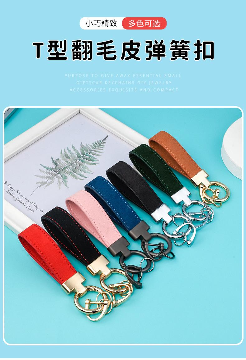 Llavero de Coche en Forma de T de Gamuza Colgante de Hebilla de Herradura de Gamuza de Cuero Distintivo para Bolso de Mujer Moda Pequeño Regalo