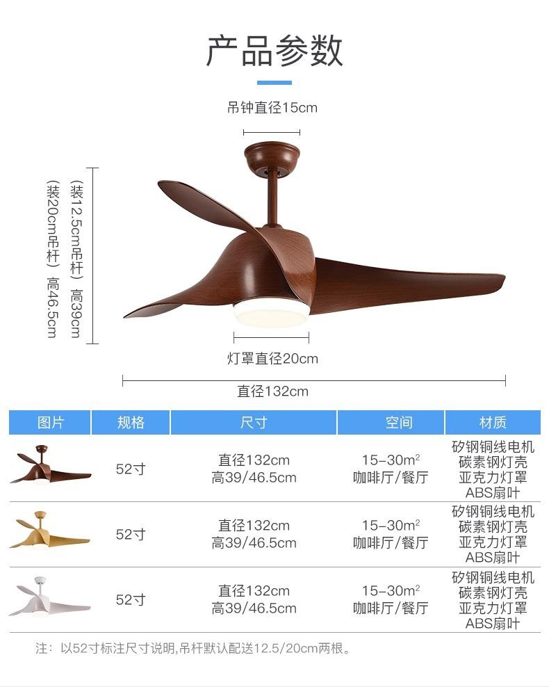 Cross-border Nordic Fan Light Household Living Room Bedroom Dining Room Ceiling Fan Light Frequency Conversion...
