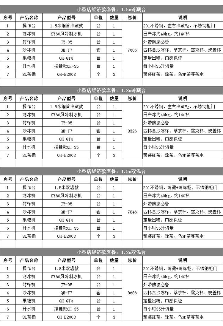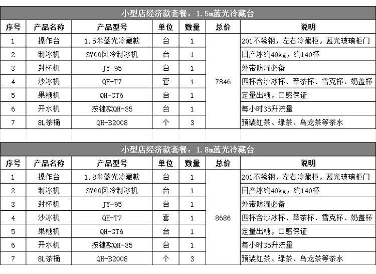 1.5m blue light refrigeration table suit (including 5 electrical appliances)