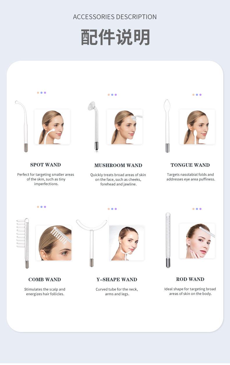 Fabricante Venta al por Mayor Portátil de Mano Máquina de Alta Frecuencia Microcorriente Alta Frecuencia Juego de Seis Piezas Dispositivo de Belleza de Luz Azul