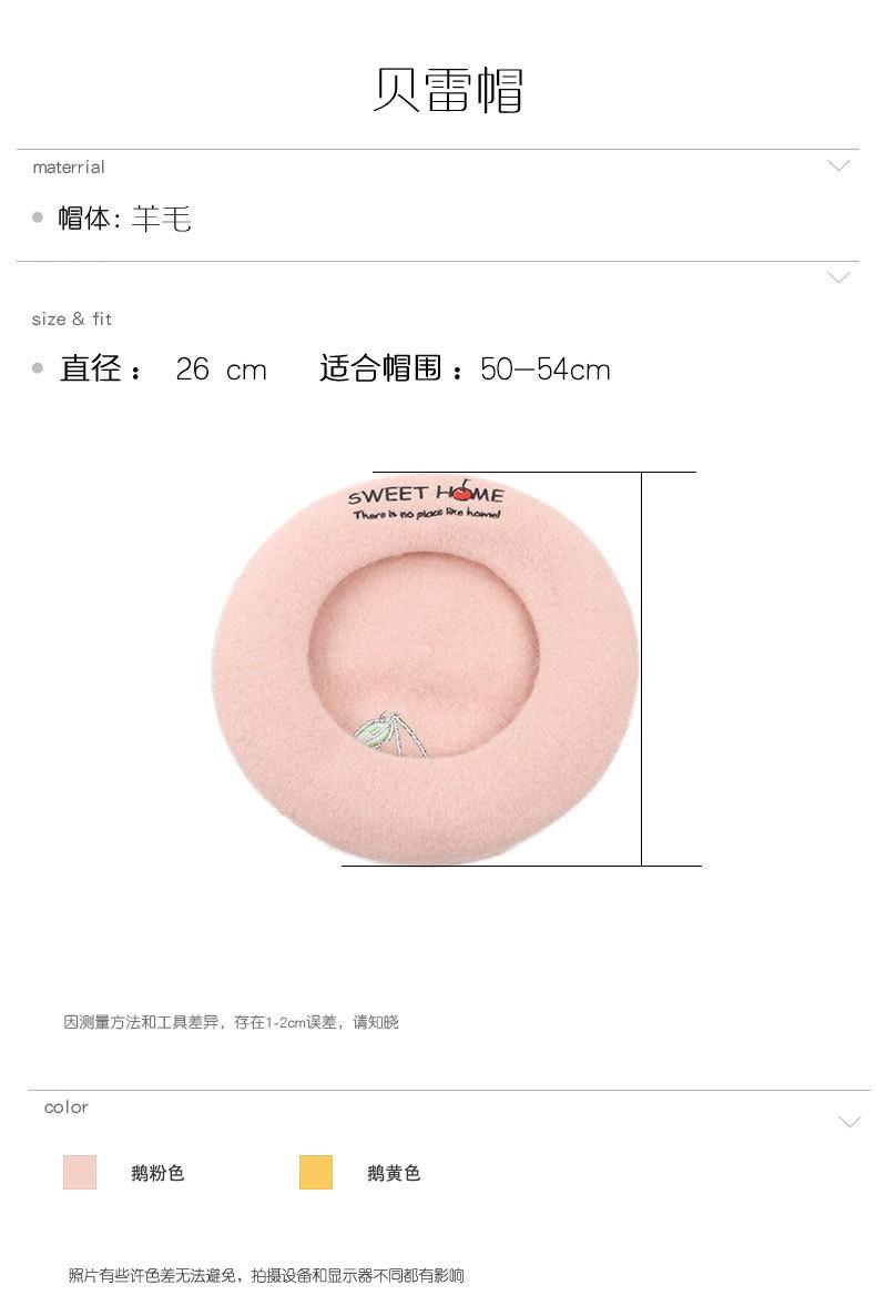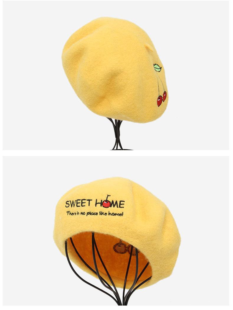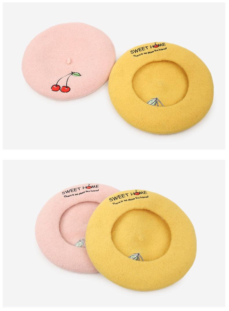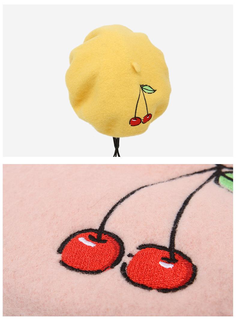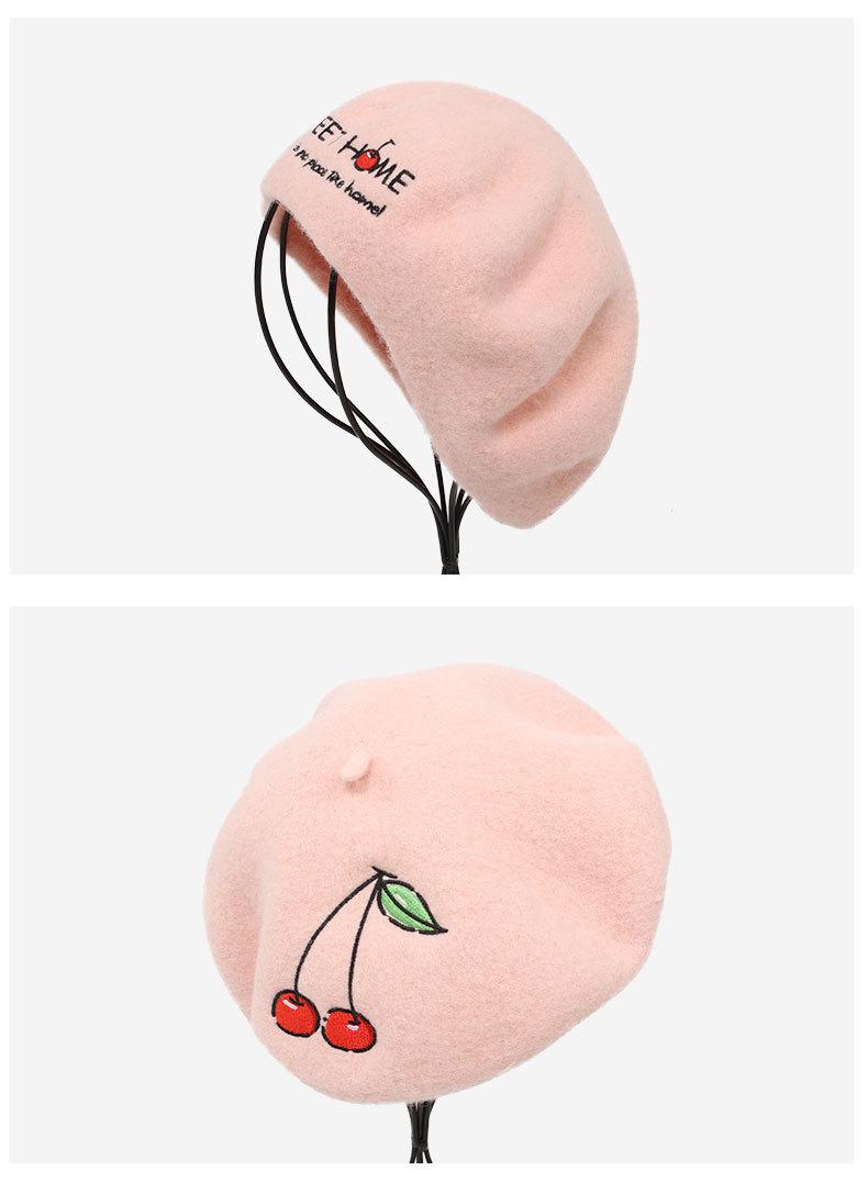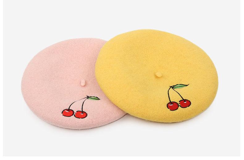 Boina Linda de Cereza para Niños Medianos y Grandes para Niñas Lindo Sombrero de Pintor Rosa Lana Sombrero de Otoño e Invierno Sombrero de Color Claro