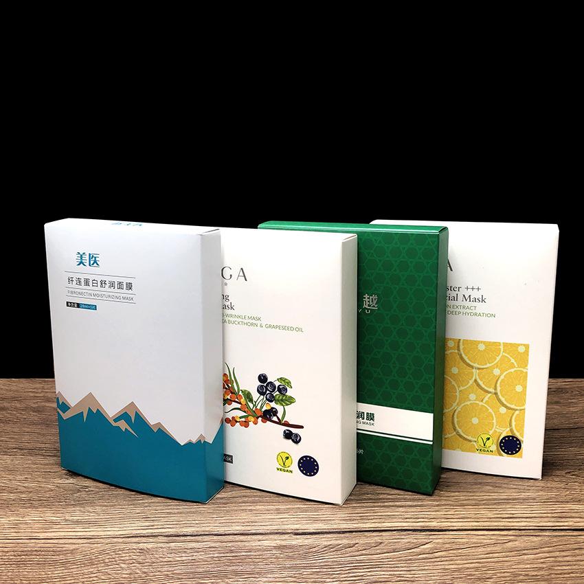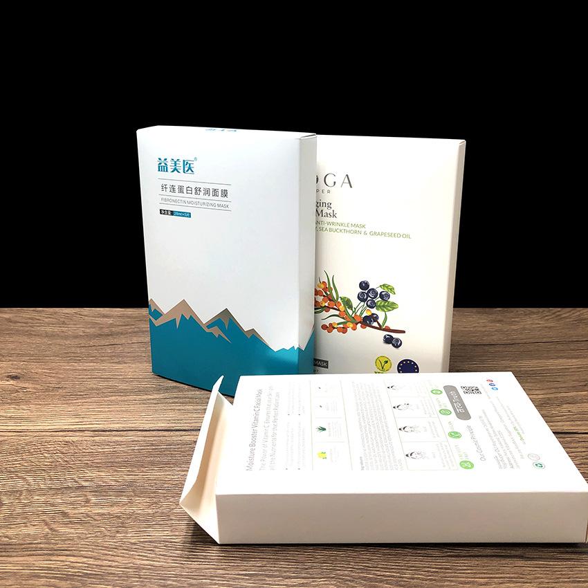 Caja de color para mascarilla facial, embalaje personalizado de cosméticos de alta gama, cartón blanco personalizado para productos de cuidado de la piel, impresión en lotes pequeños.