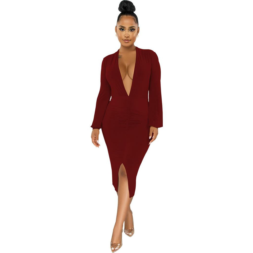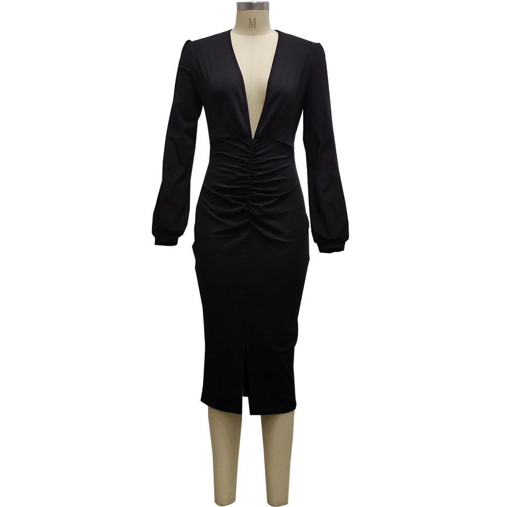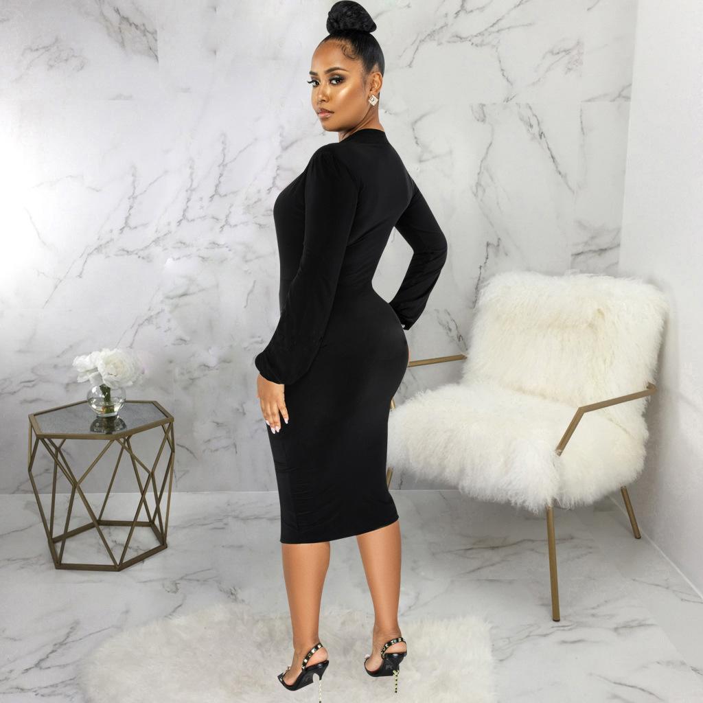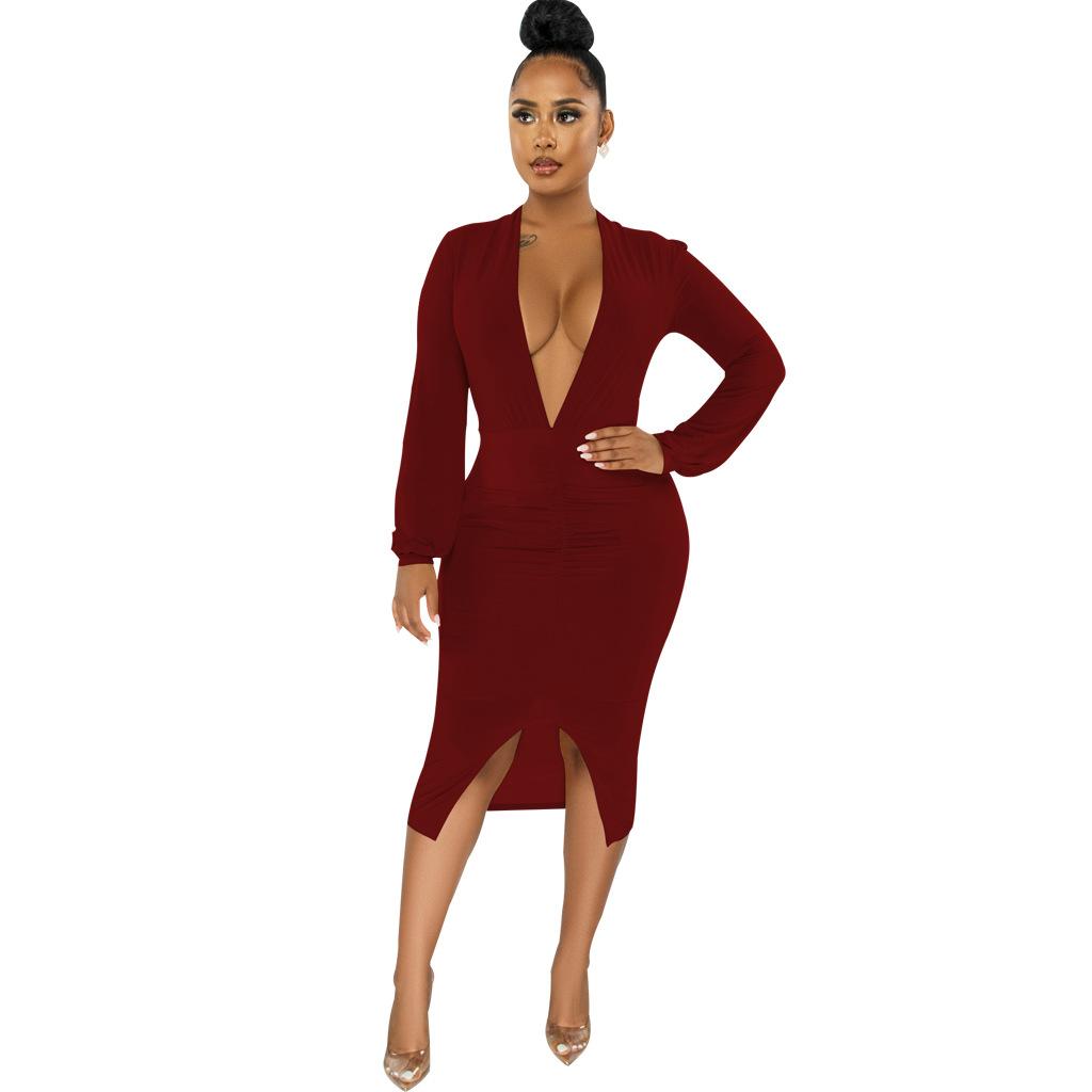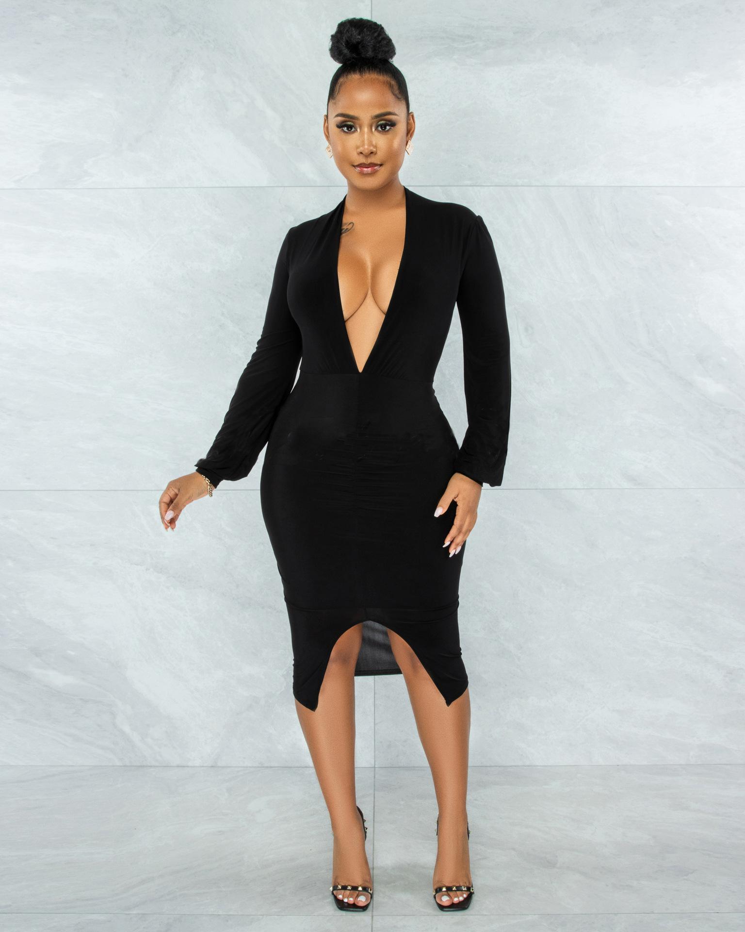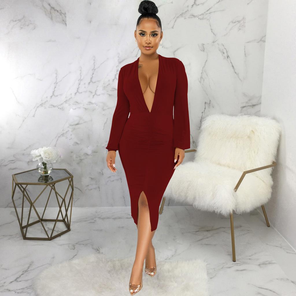 Compra Vestido de otoño e invierno 2022, Amazon, eBay, comercio exterior, ropa de mujer europea y americana, color sólido, sexy, con cuello en V. al por mayor en Joom.pro