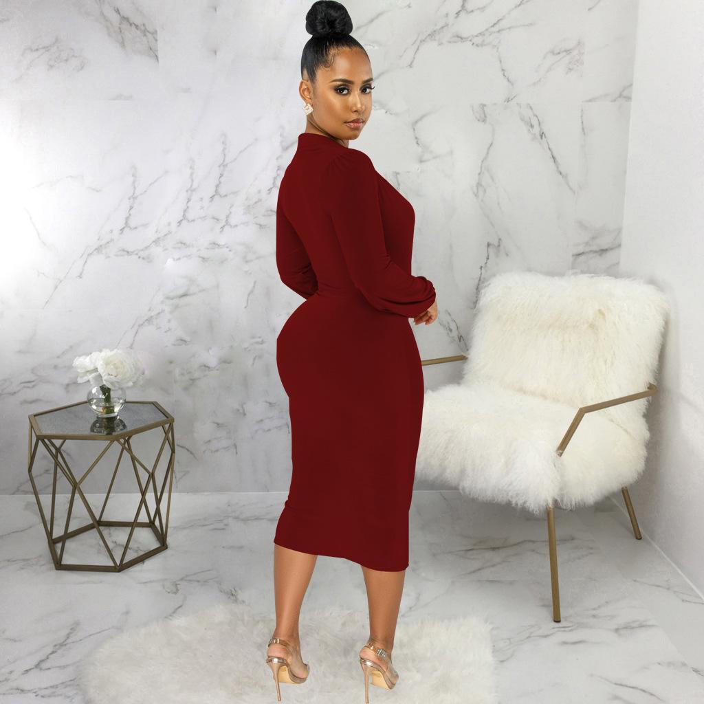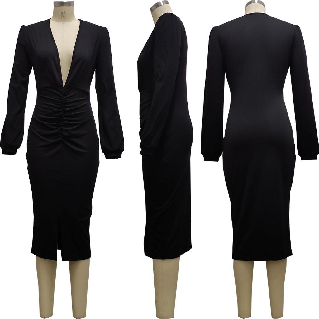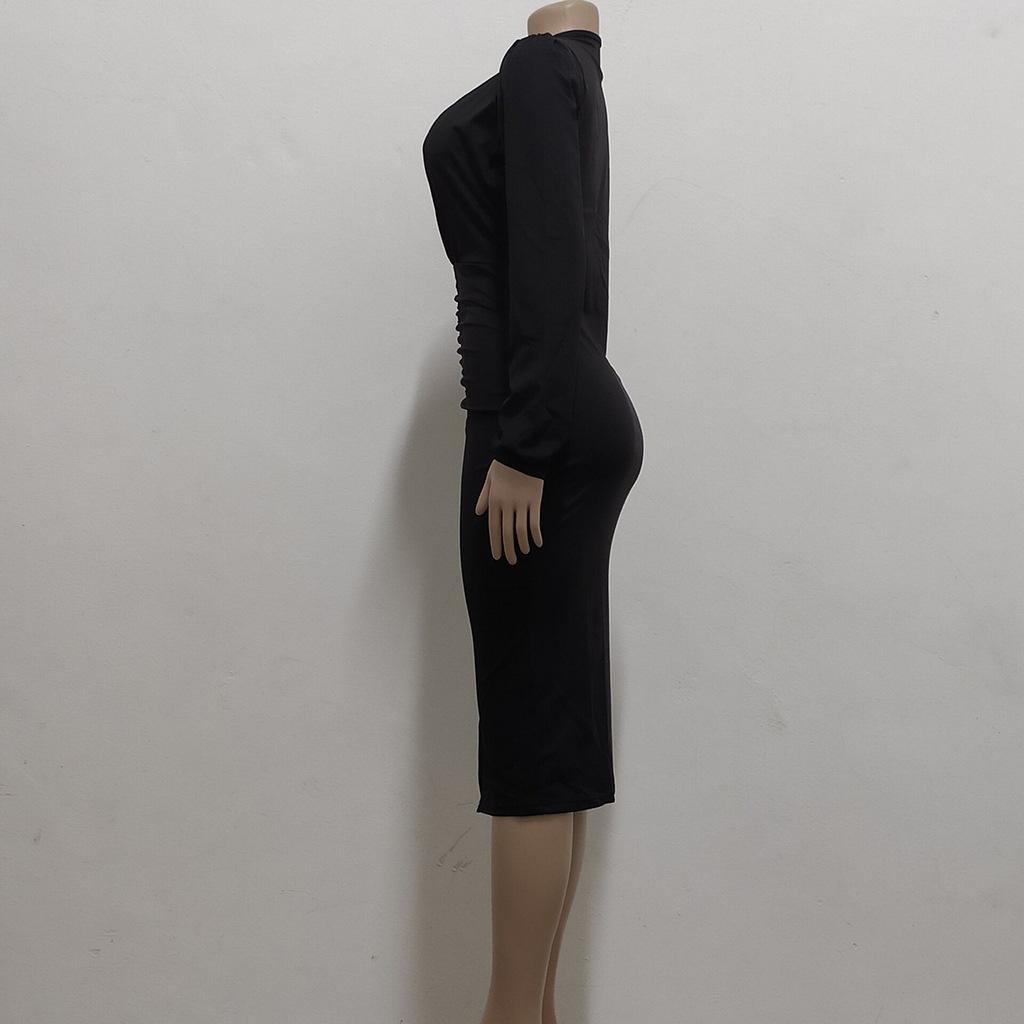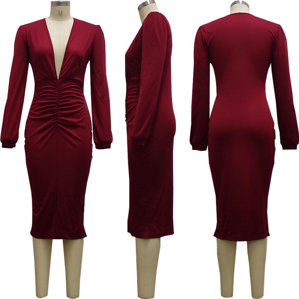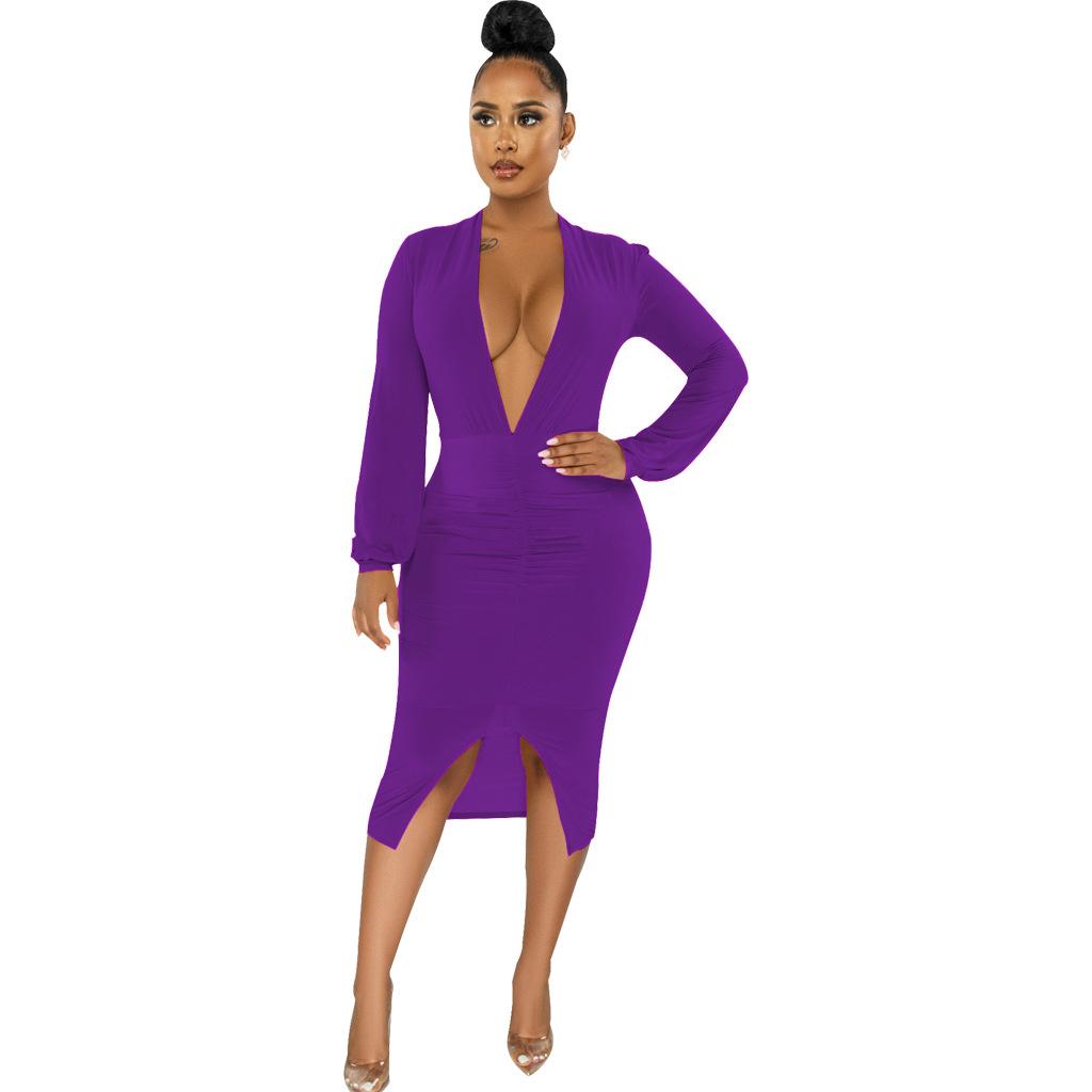 Compra Vestido de otoño e invierno 2022, Amazon, eBay, comercio exterior, ropa de mujer europea y americana, color sólido, sexy, con cuello en V. al por mayor en Joom.pro