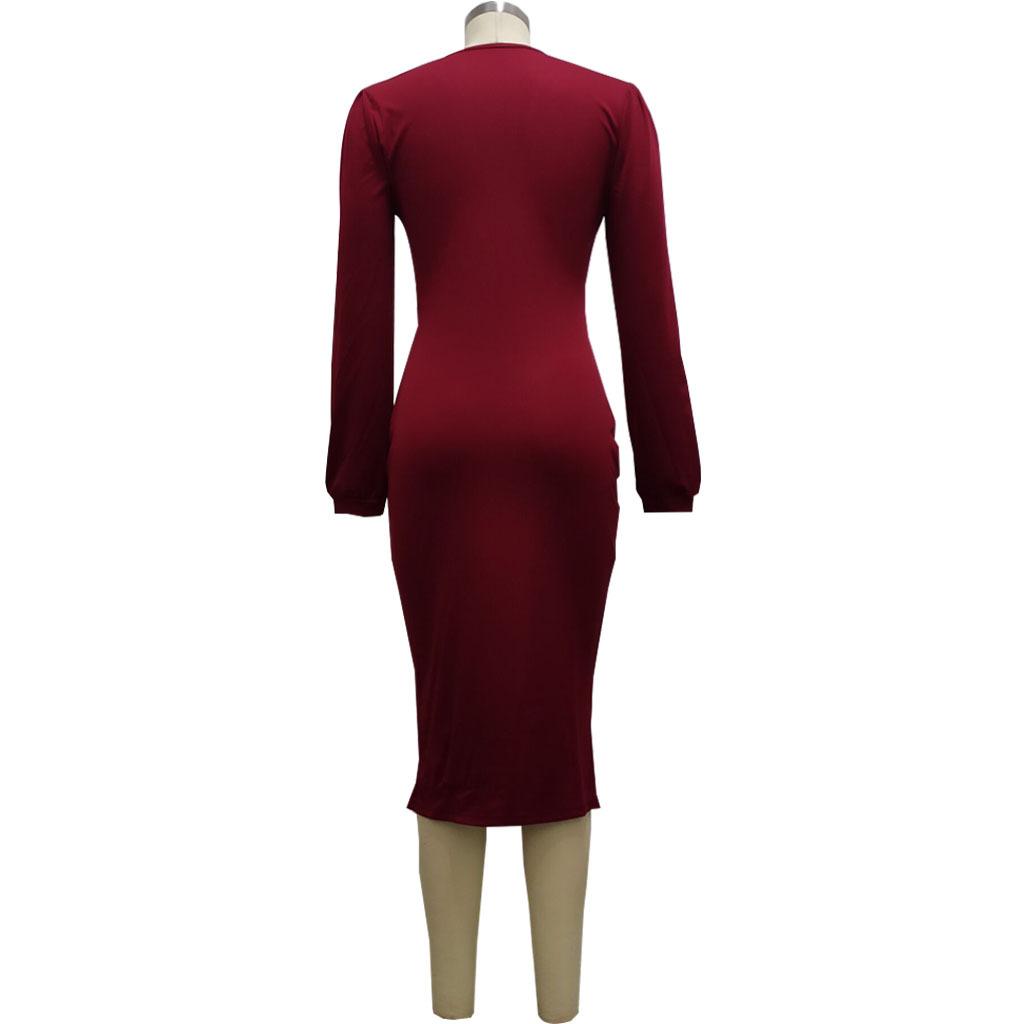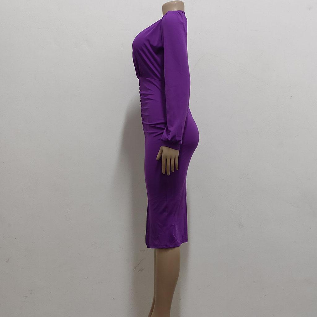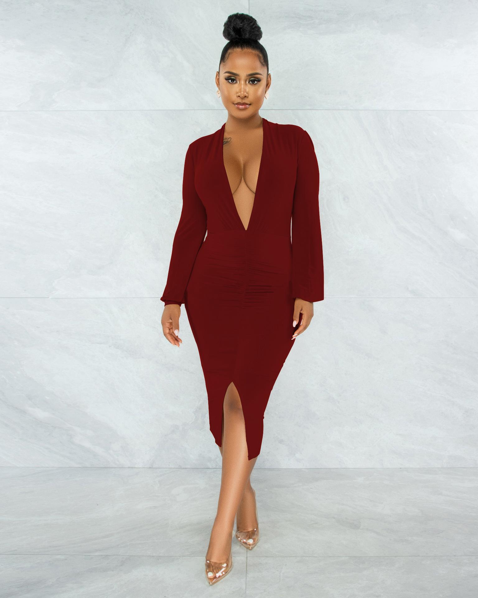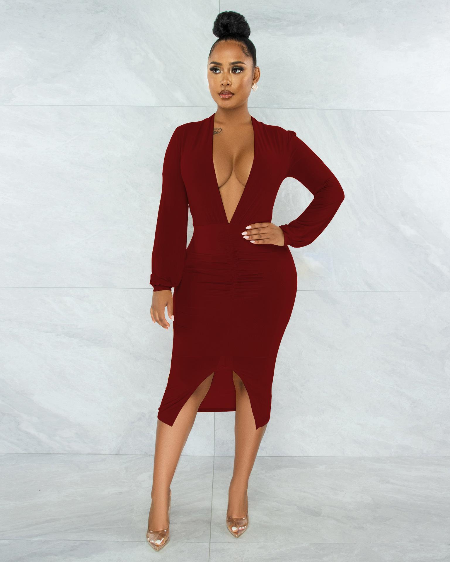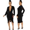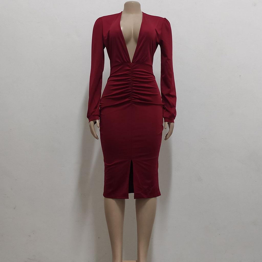 Compra Vestido de otoño e invierno 2022, Amazon, eBay, comercio exterior, ropa de mujer europea y americana, color sólido, sexy, con cuello en V. al por mayor en Joom.pro