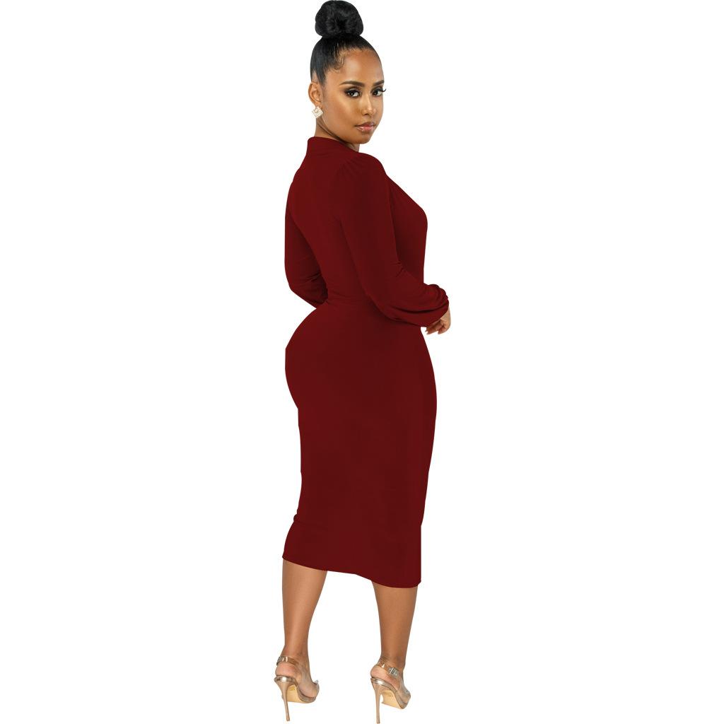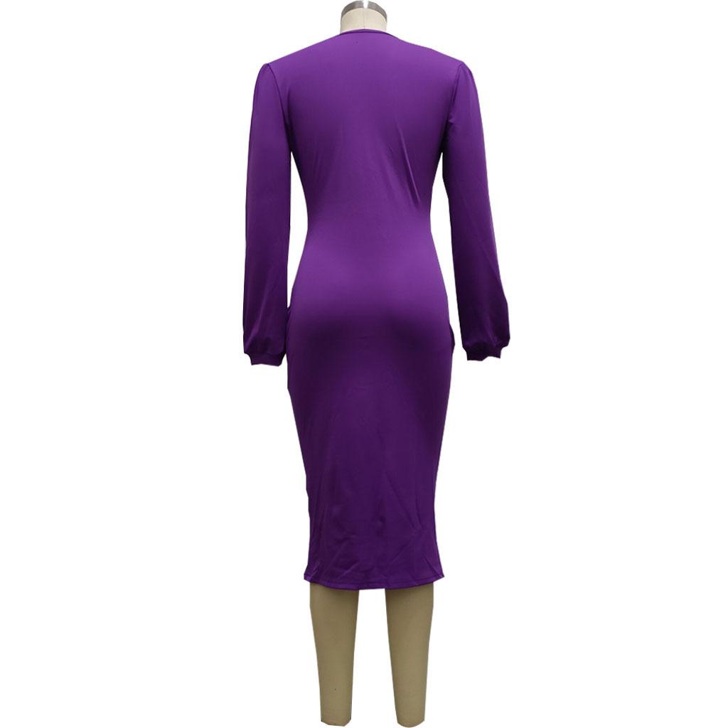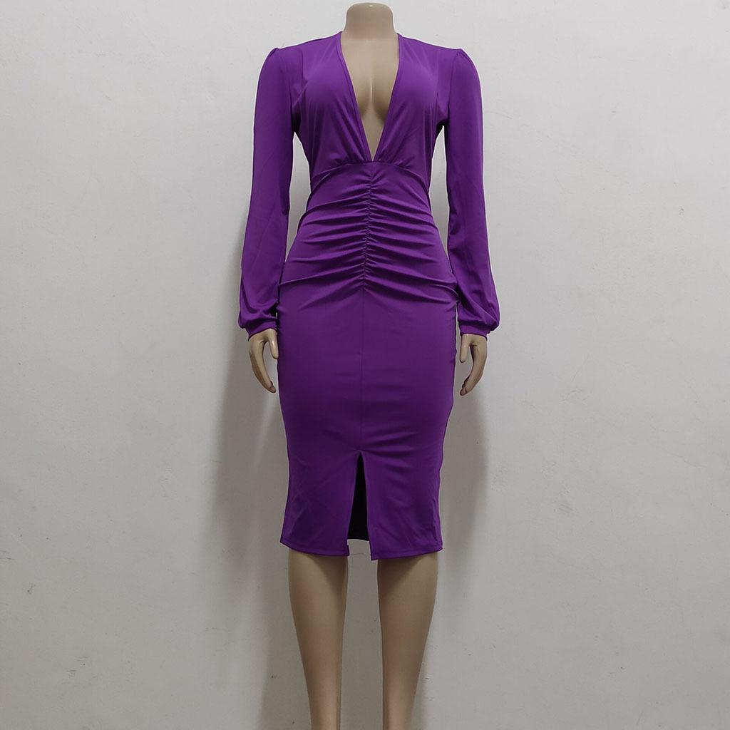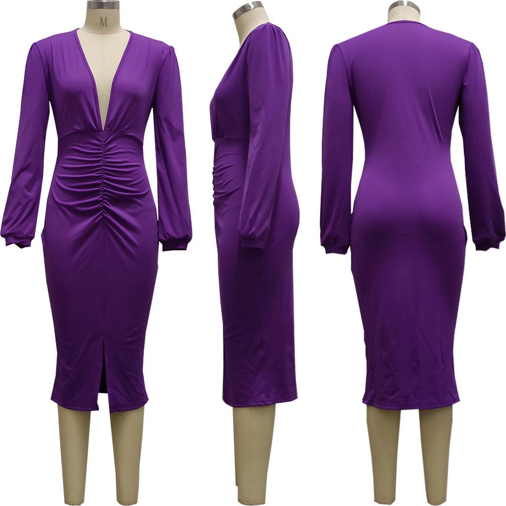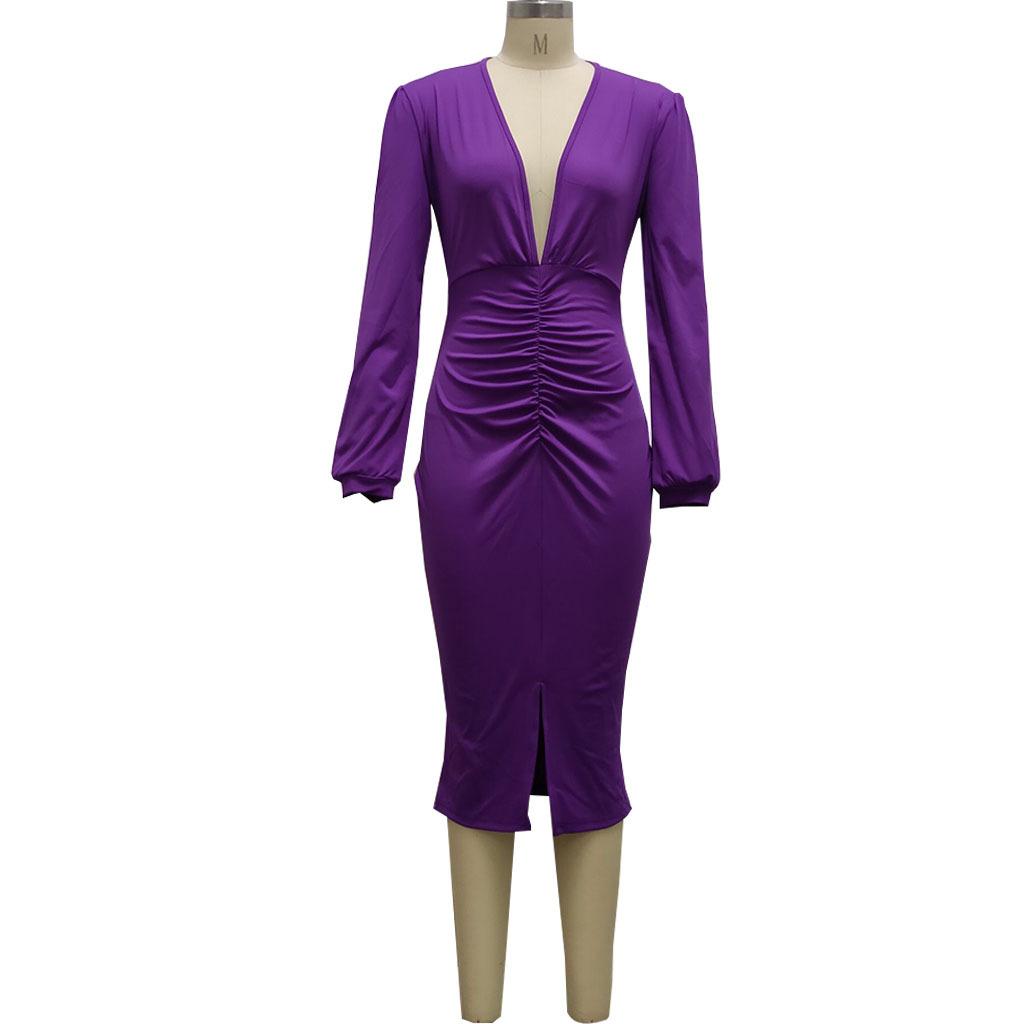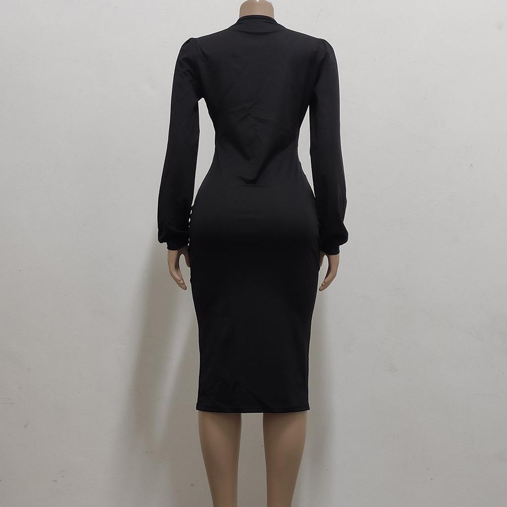 Compra Vestido de otoño e invierno 2022, Amazon, eBay, comercio exterior, ropa de mujer europea y americana, color sólido, sexy, con cuello en V. al por mayor en Joom.pro