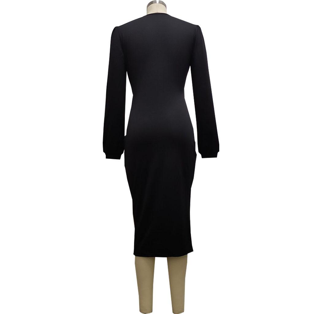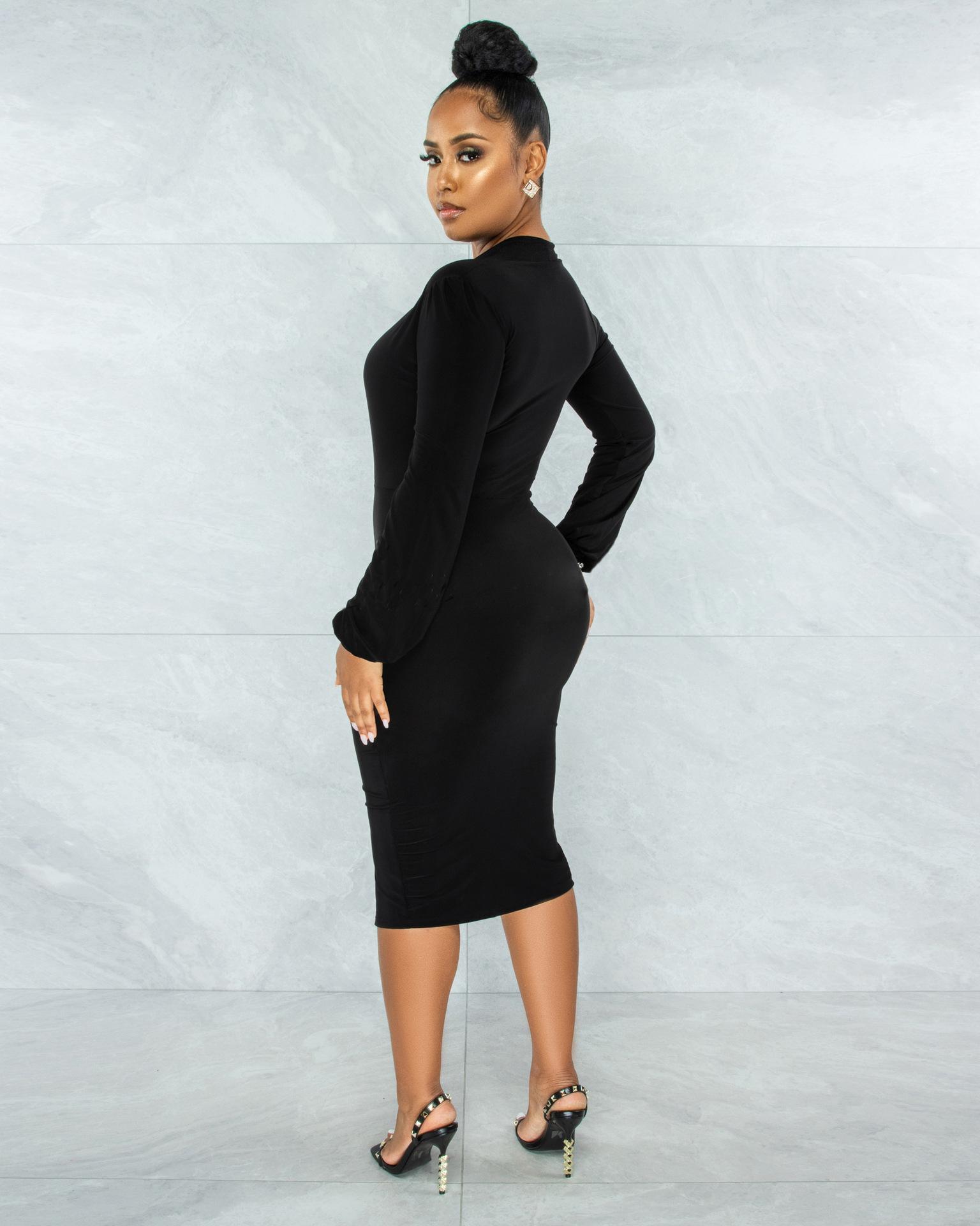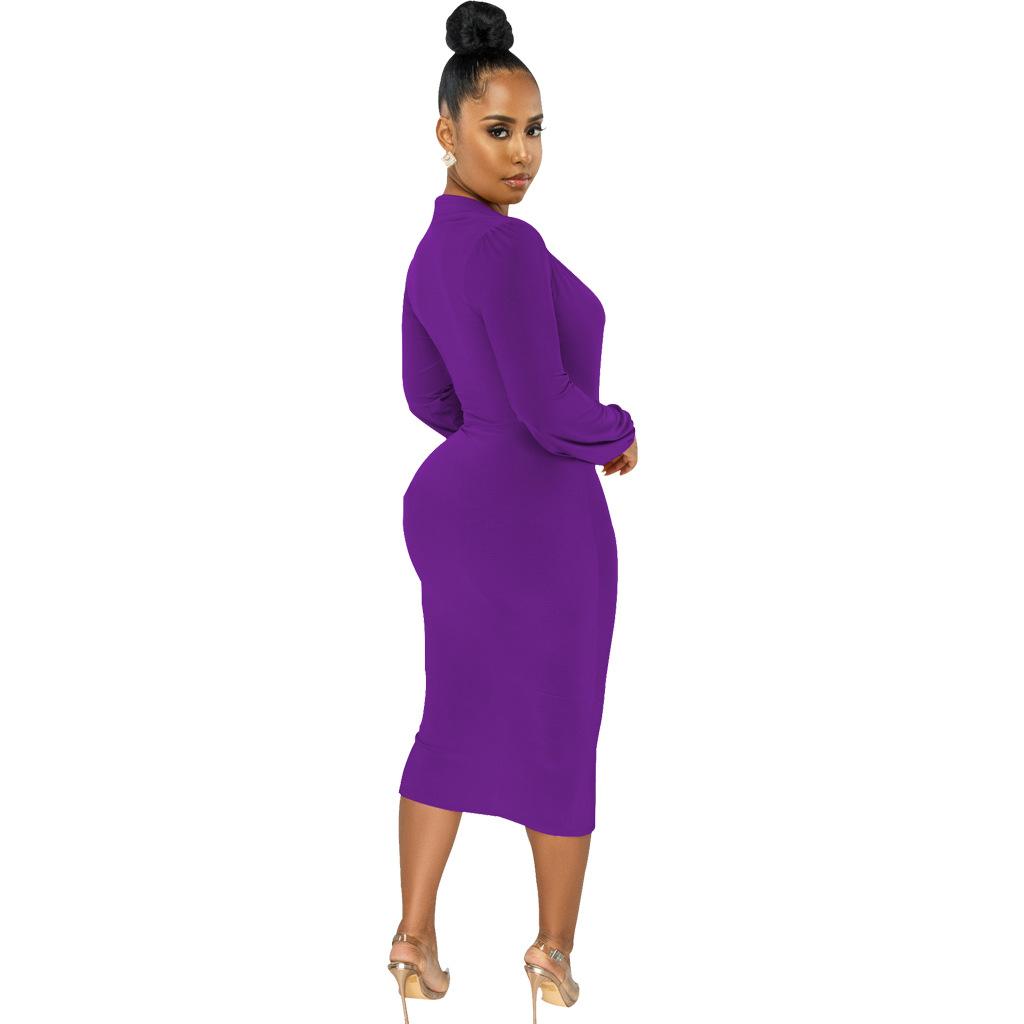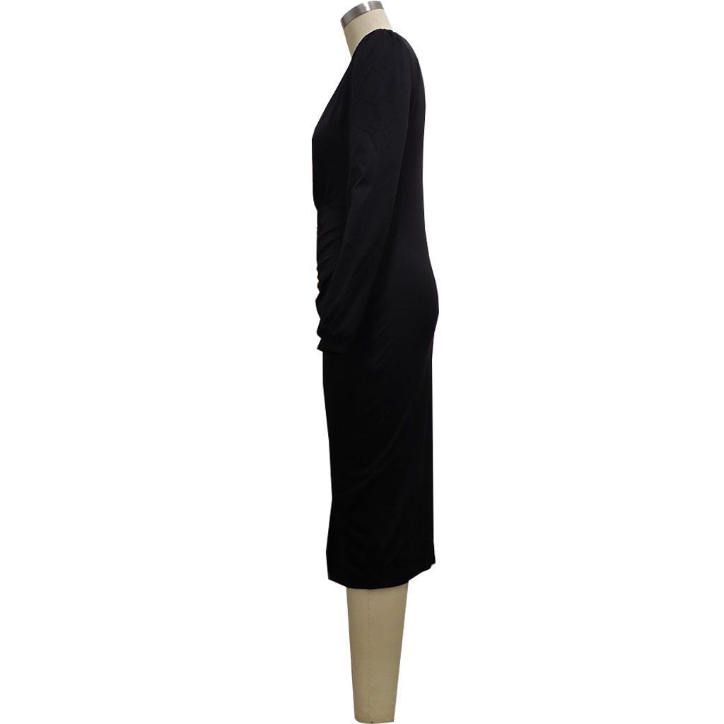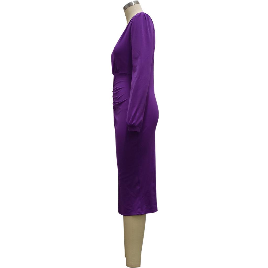Compra Vestido de otoño e invierno 2022, Amazon, eBay, comercio exterior, ropa de mujer europea y americana, color sólido, sexy, con cuello en V. al por mayor en Joom.pro
