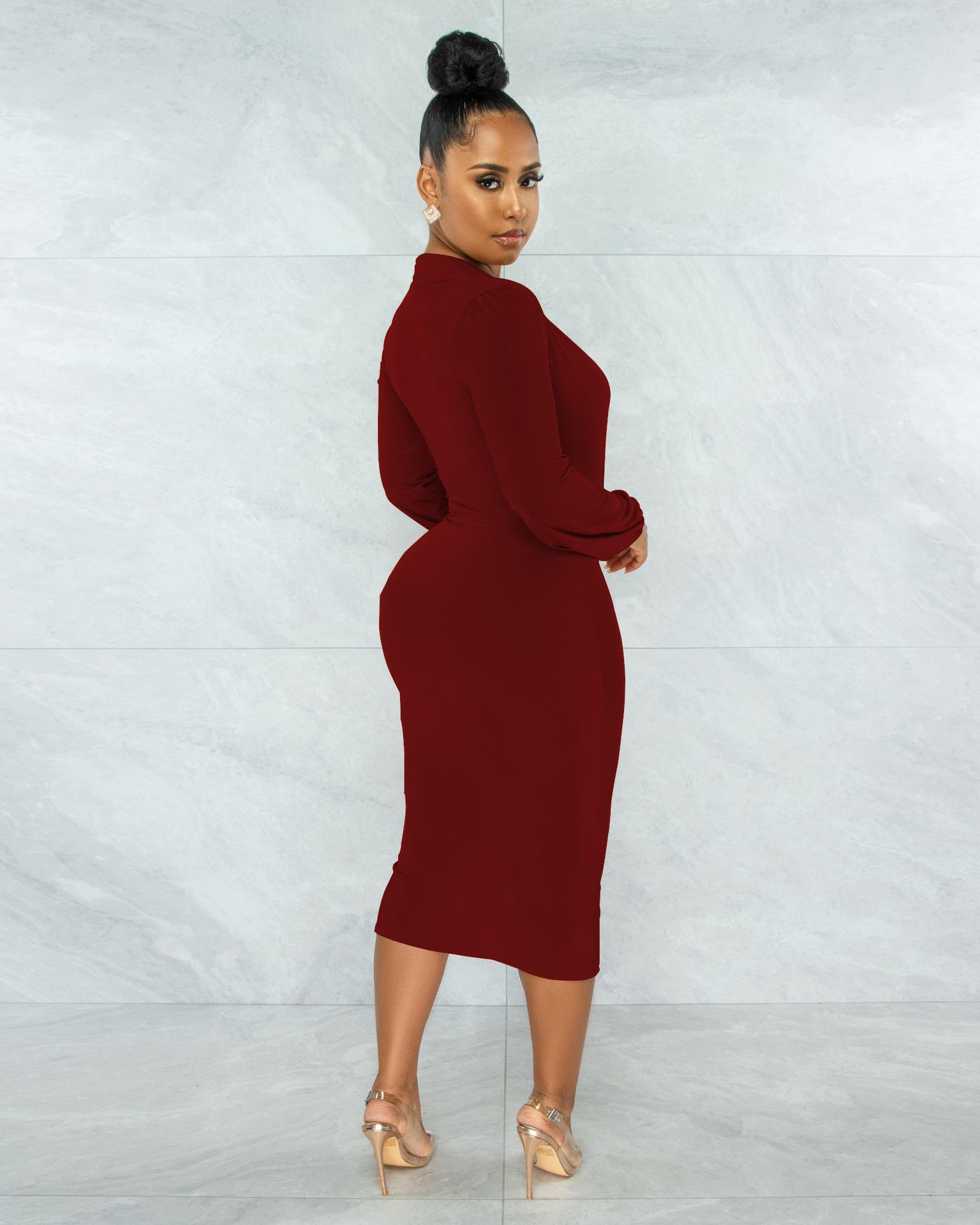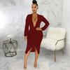 Vestido de otoño e invierno 2022, Amazon, eBay, comercio exterior, ropa de mujer europea y americana, color sólido, sexy, con cuello en V.