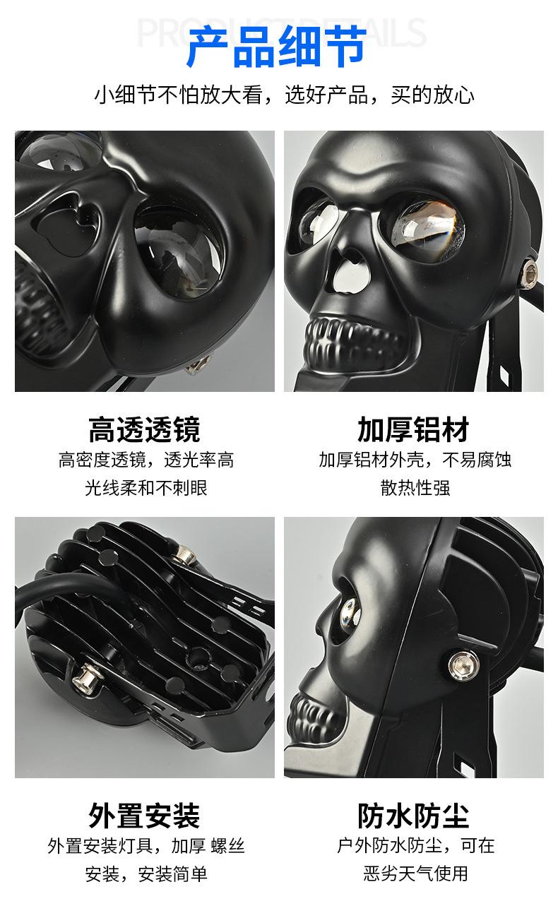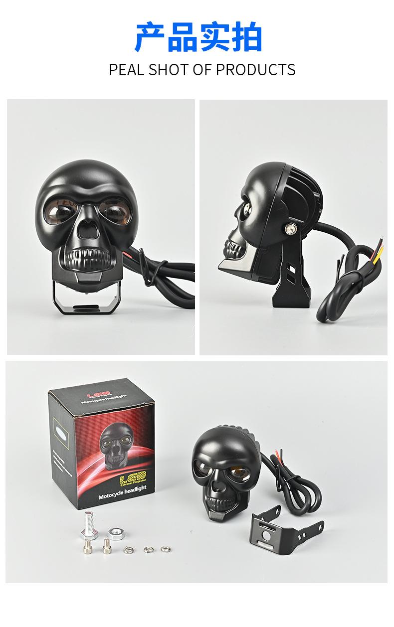 Compra Faro LED de motocicleta con calavera negra transfronterizo, luz de carretera y cruce, faro, motocicleta eléctrica externa modificada al por mayor en Joom.pro
