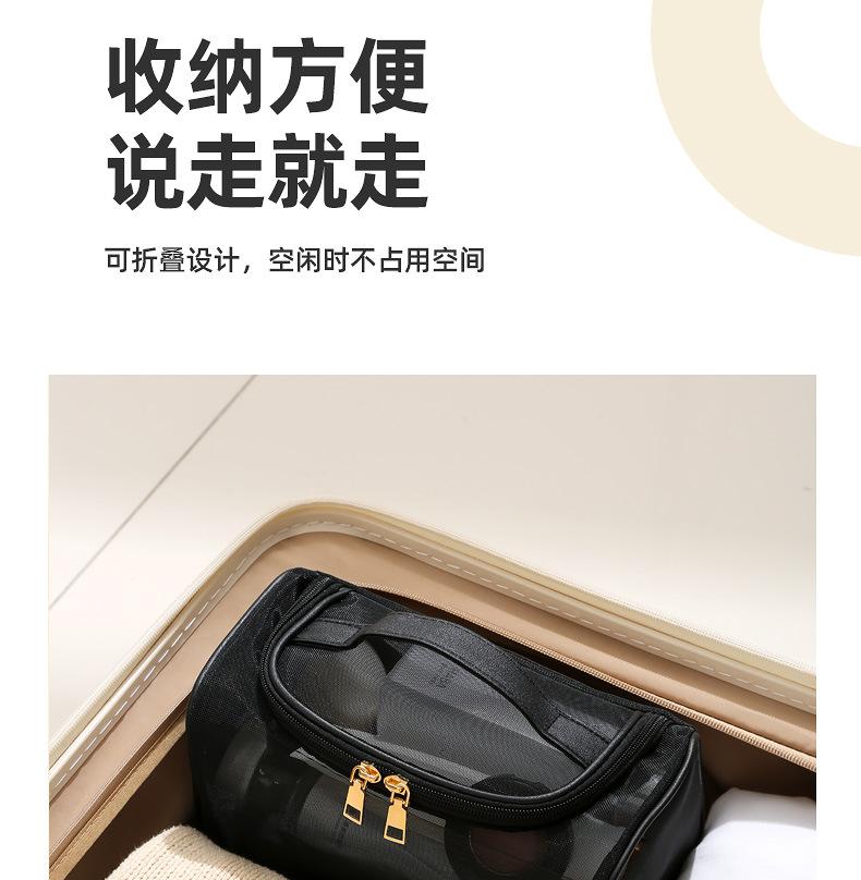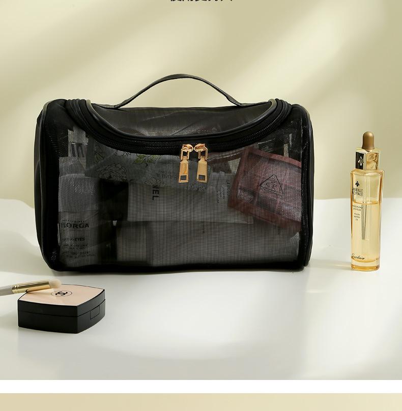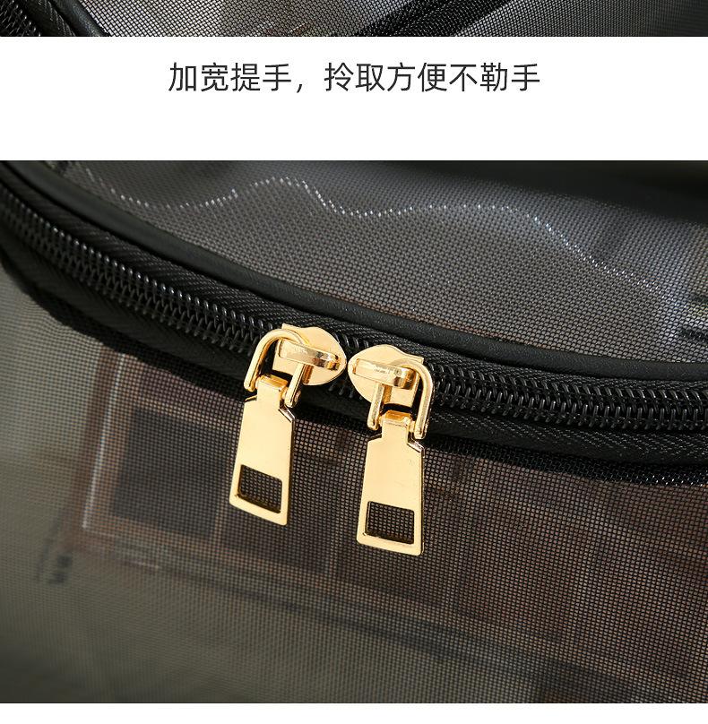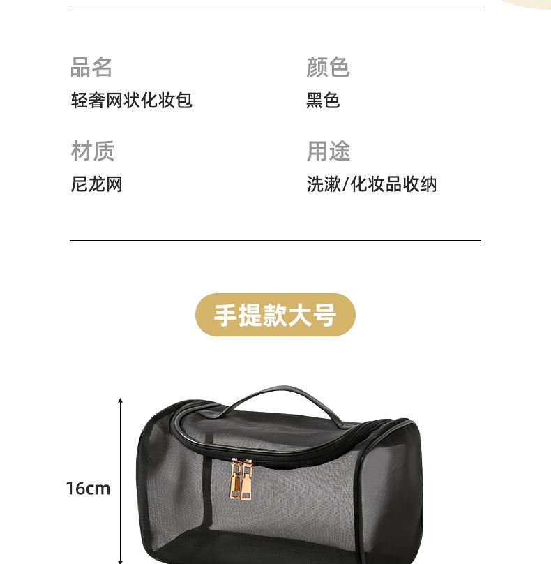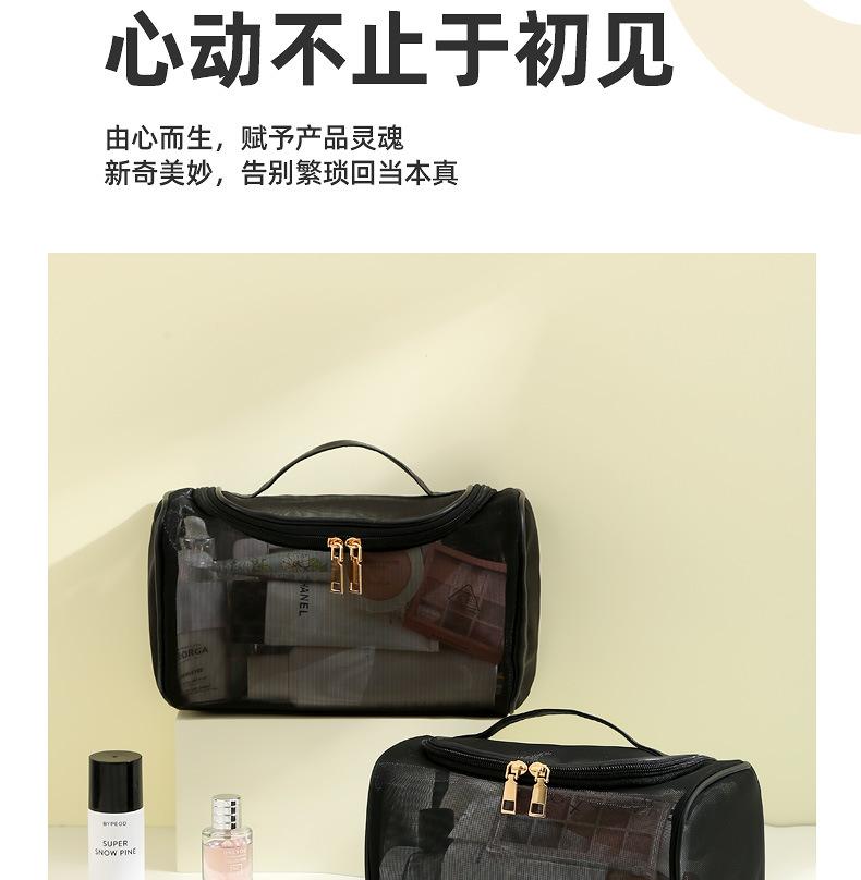 Nueva bolsa de malla para cosméticos, bolsa de almacenamiento de cosméticos de gran capacidad, bolsa de viaje portátil de malla transparente, bolsa de lavado con logotipo fijo