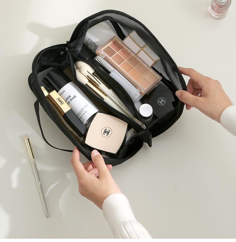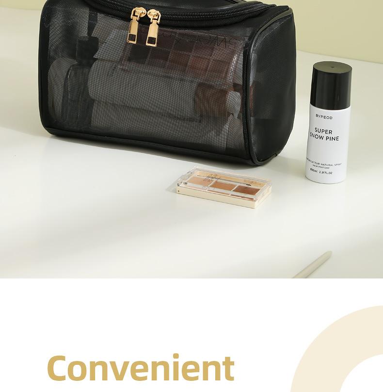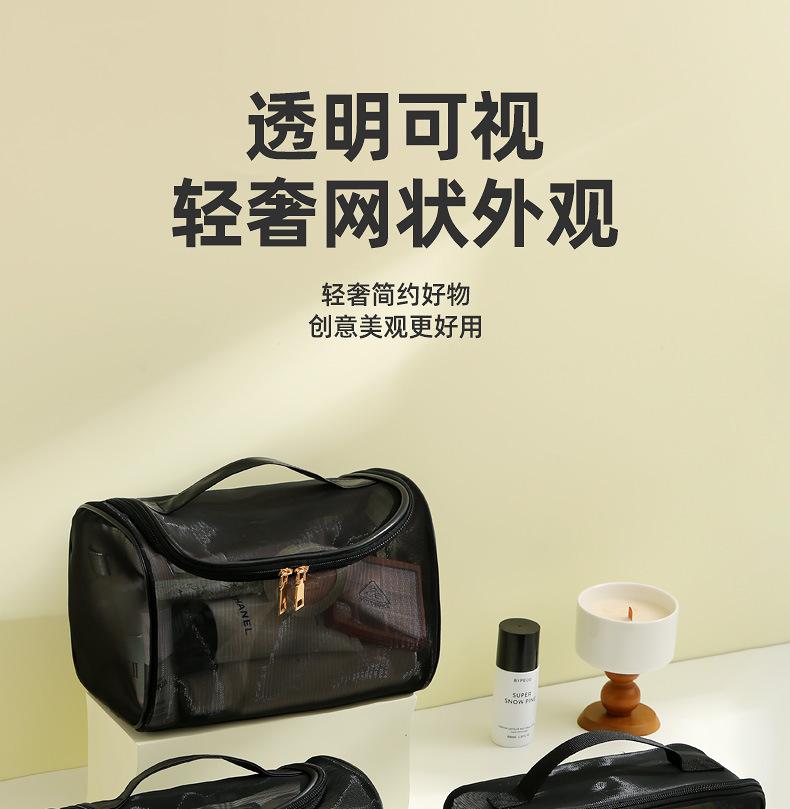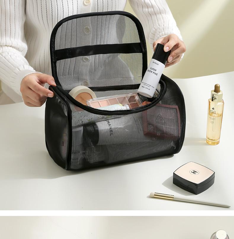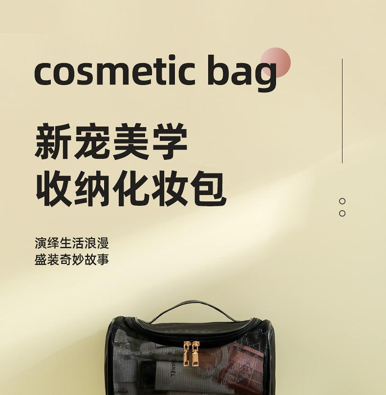 Nueva bolsa de malla para cosméticos, bolsa de almacenamiento de cosméticos de gran capacidad, bolsa de viaje portátil de malla transparente, bolsa de lavado con logotipo fijo