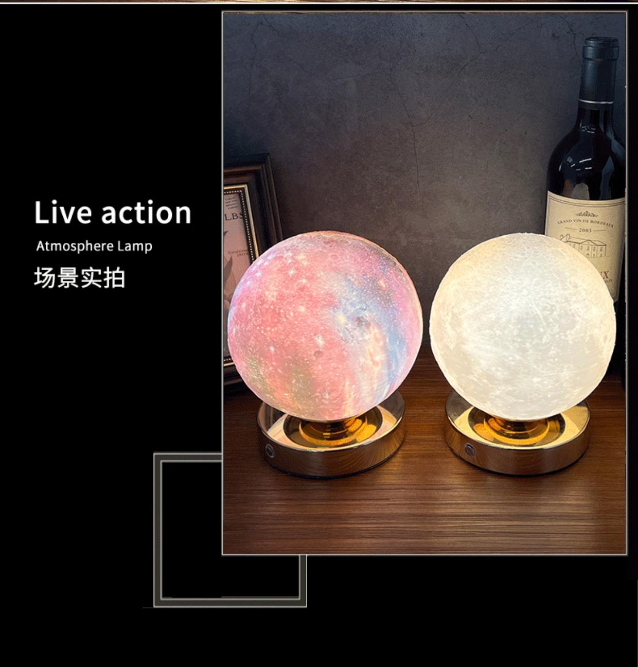Lámpara de Mesa de Bar Recargable, Lámpara de Ambiente, Lámpara de Planeta Cielo Estrellado, Lámpara de Noche de Luna, Lámpara de Noche para Dormitorio, Personalización de Lámpara de Mesa de Bar Transparente