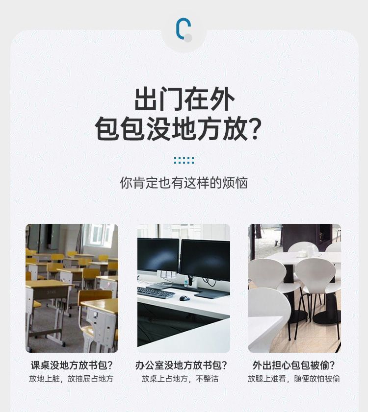 Gancho para mochila de estudiante, gancho para bolso de escritorio, gancho para bolso lateral, gancho para escritorio de oficina, gancho para bolso extraíble