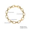 Longitud de la cadena 21.5cm, cadena de diez eslabones cuadrados con cuatro circonitas 12.4*8.6mm, cadena en forma de O 15.3*4mm, cierre en S 16.5*9mm