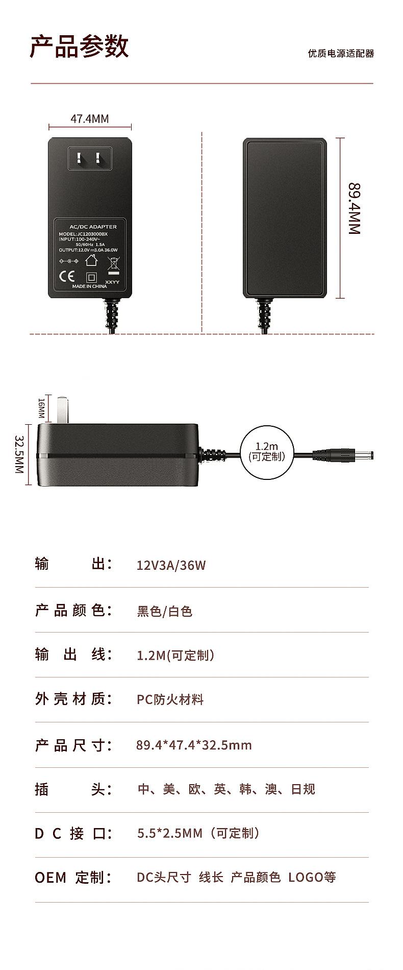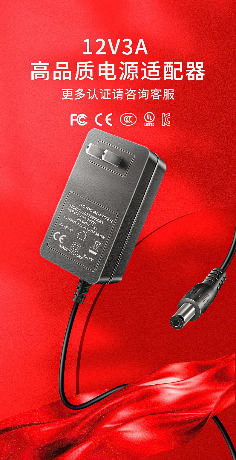 Adaptador de Corriente 12V3A Estándar Chino Cqc Estándar Estadounidense Certificado Fcc 24V1.5A Instrumento Depilatorio Audio Pequeño Electrodoméstico Fuente de Alimentación