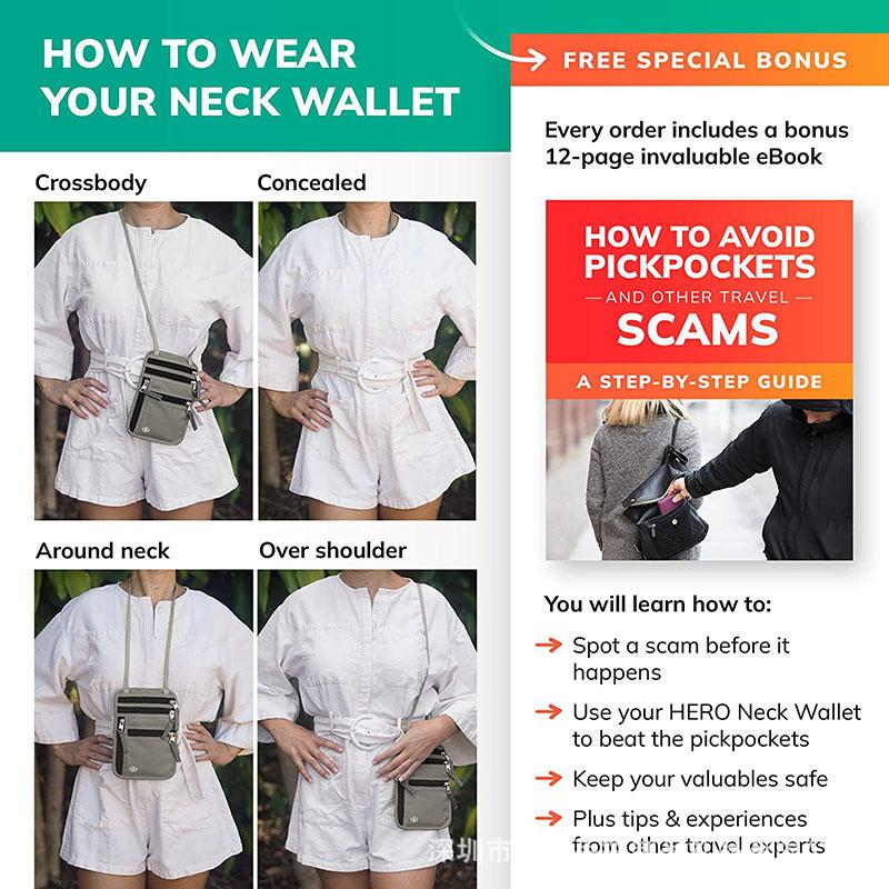 Bolso para pasaporte con soporte y cepillo antirrobo RFID, popular en Amazon, porta billetes para viajar al extranjero, bolso bandolera para pasaporte.