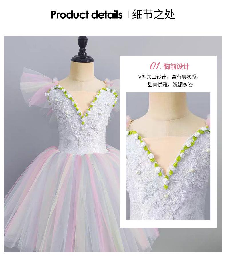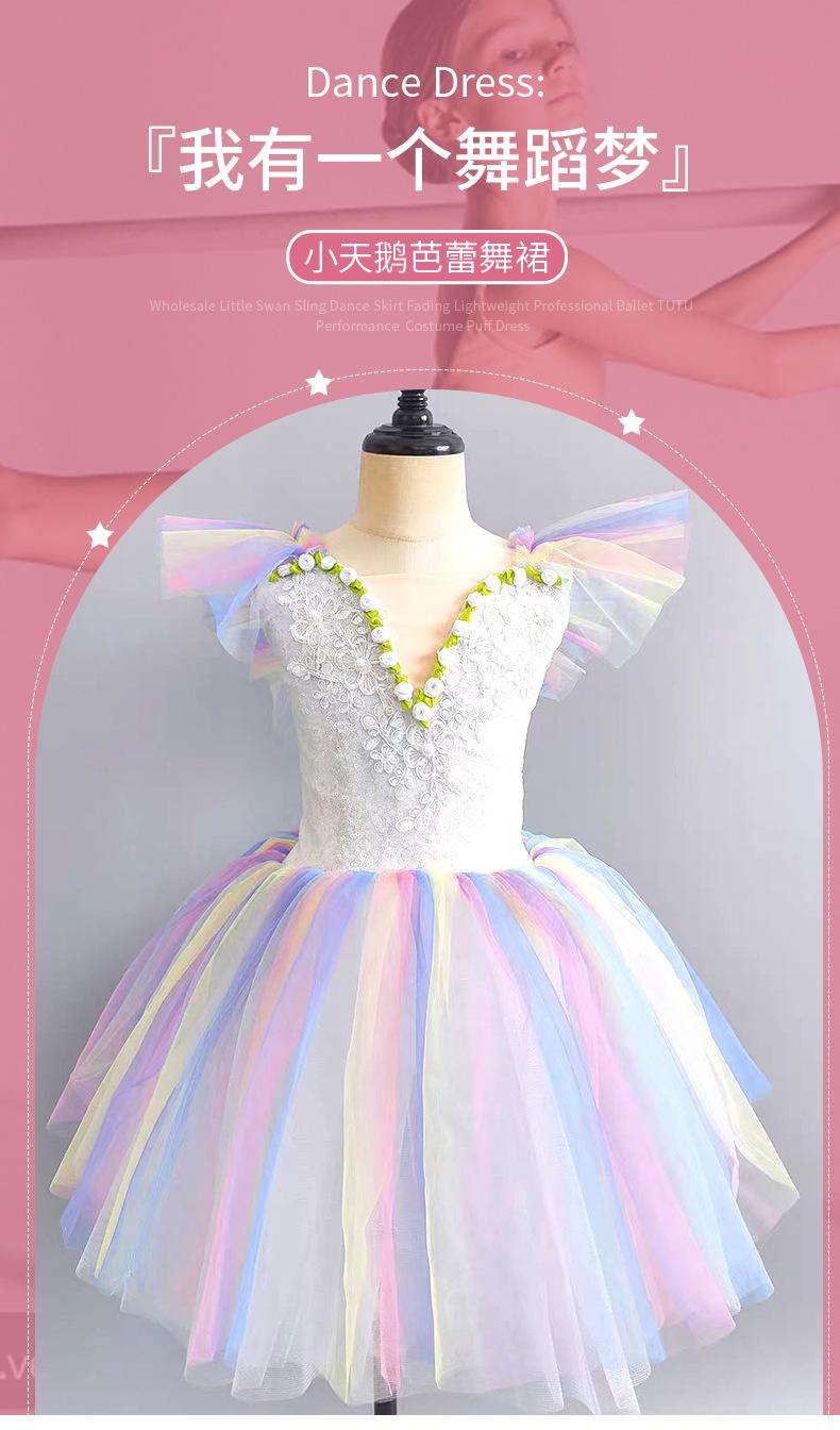 Ropa de Actuación de Danza del Cisne Infantil Transfronteriza Disfraz de Ballet Infantil Vestido Tutú para Niñas Ropa de Actuación Vestido con Tirantes