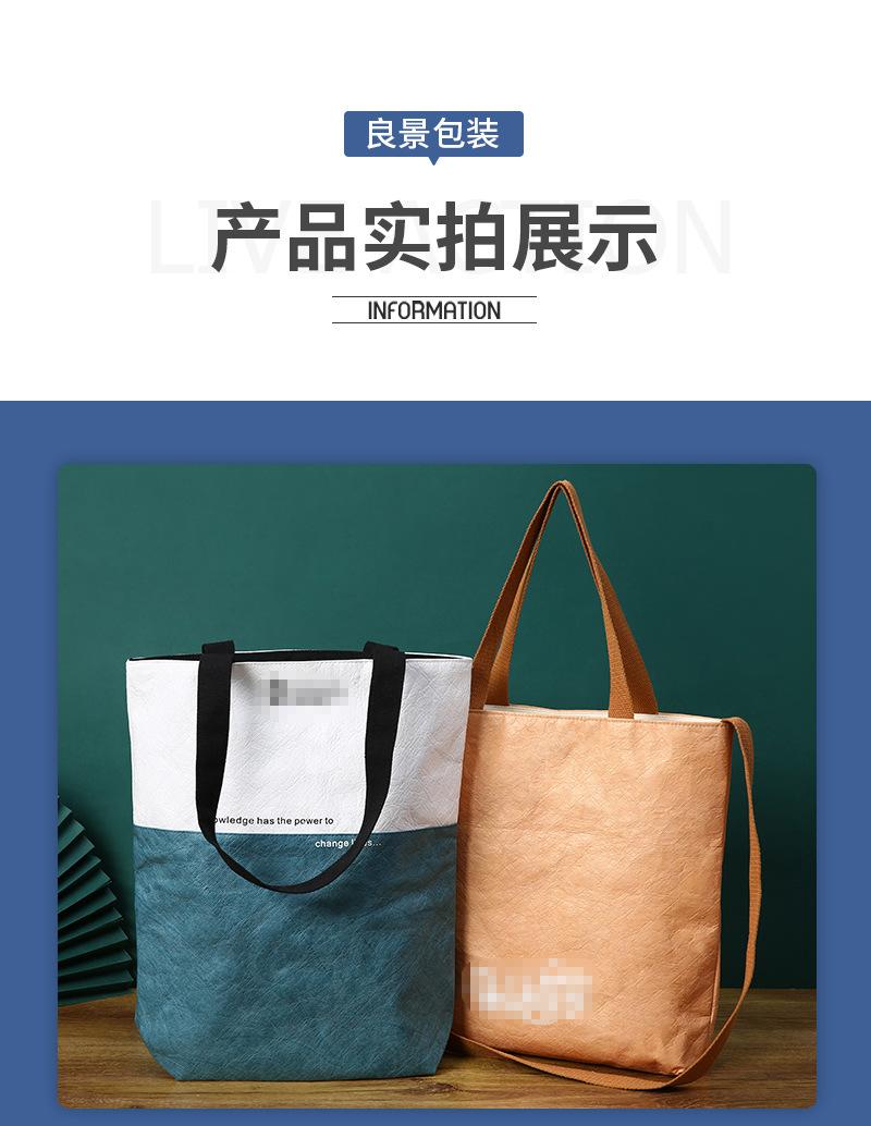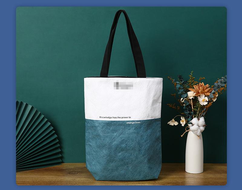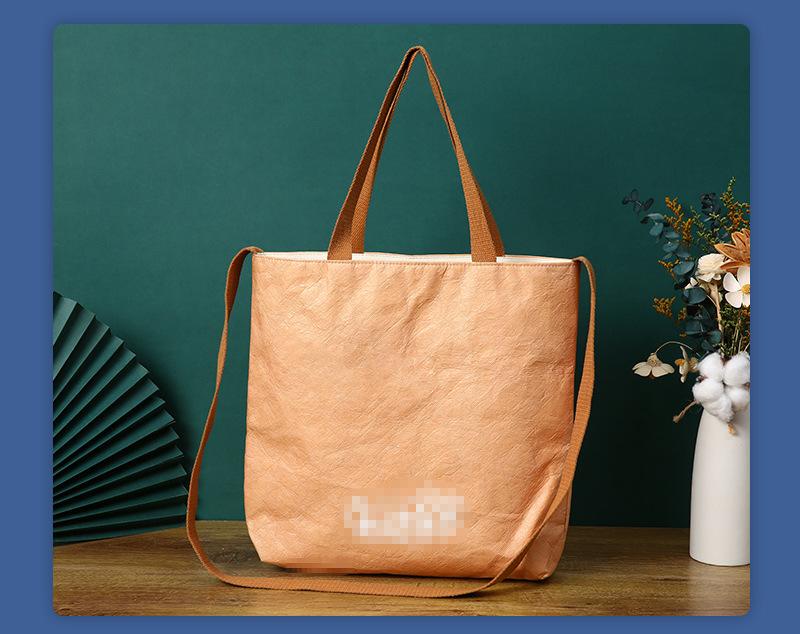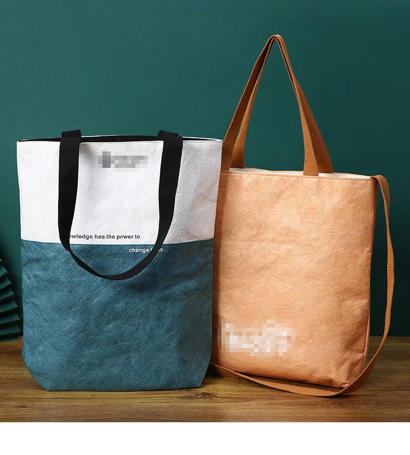 Bolsa de papel DuPont simple para combinar con todo, personalizada, impermeable, bolso de papel Kraft, gran capacidad, bolsa de compras, logotipo imprimible