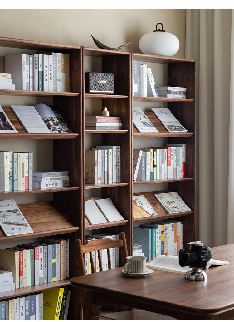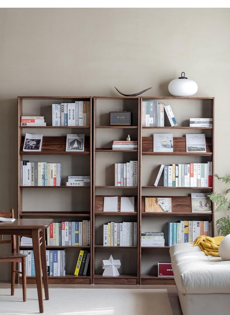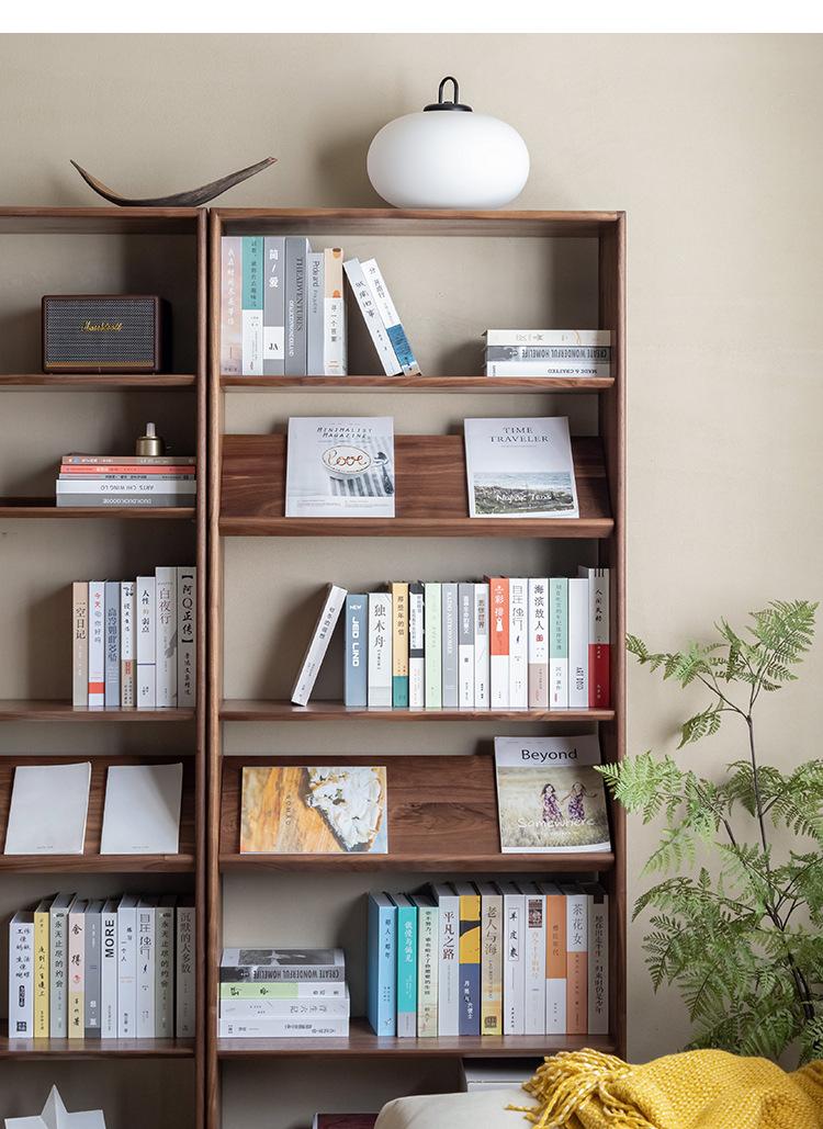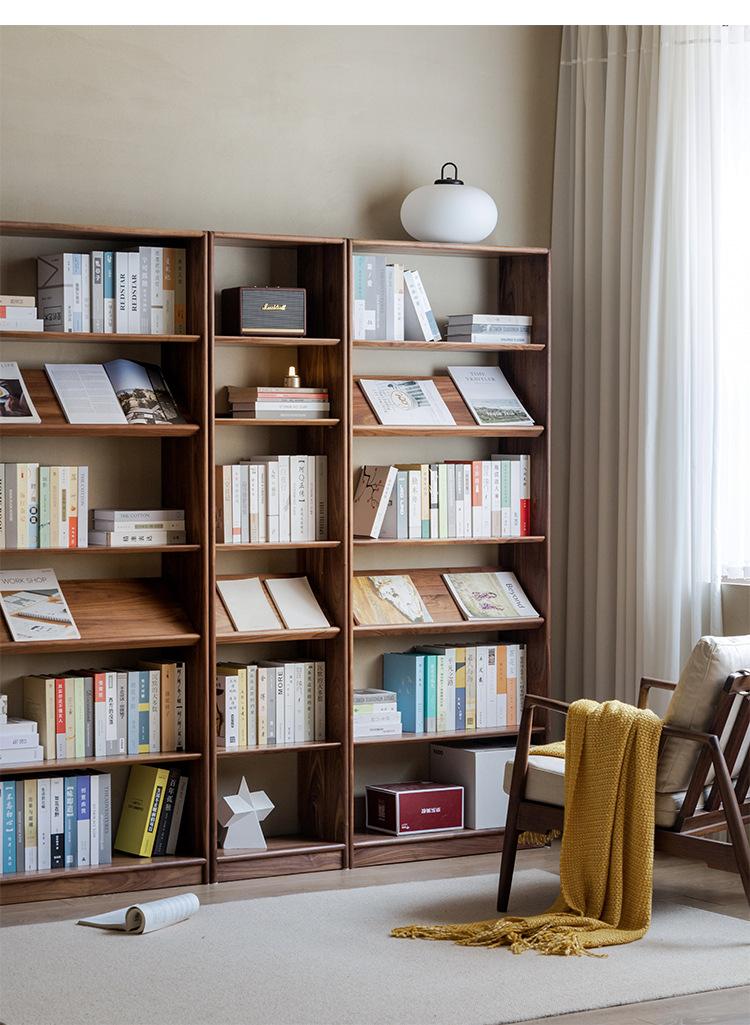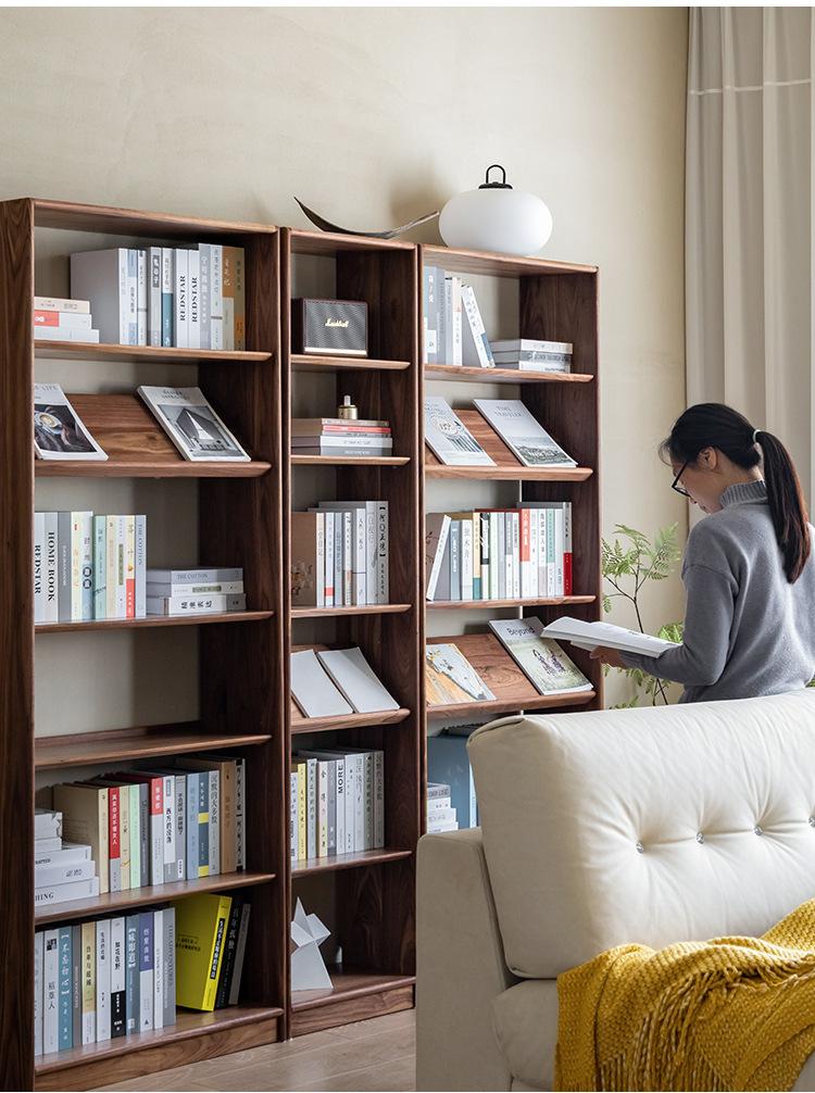 Librero de pared completa para sala de estar de nogal negro americano, estante de almacenamiento de madera maciza, librero de combinación de pie de madera de cerezo, estante de lectura, librero