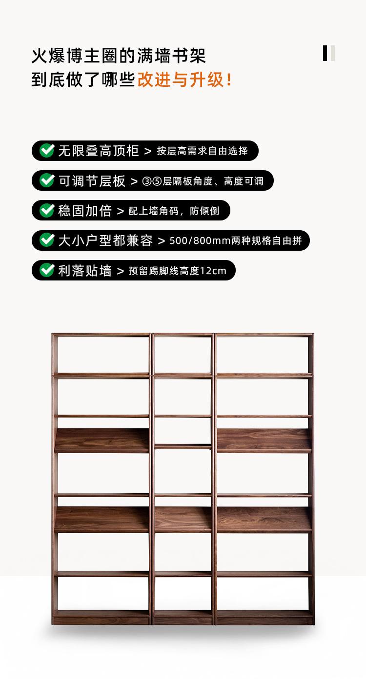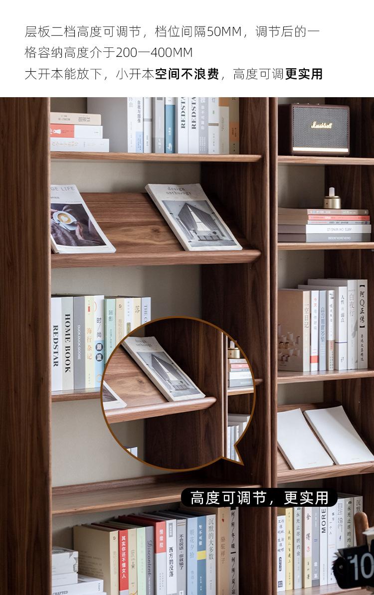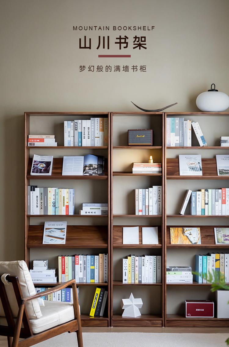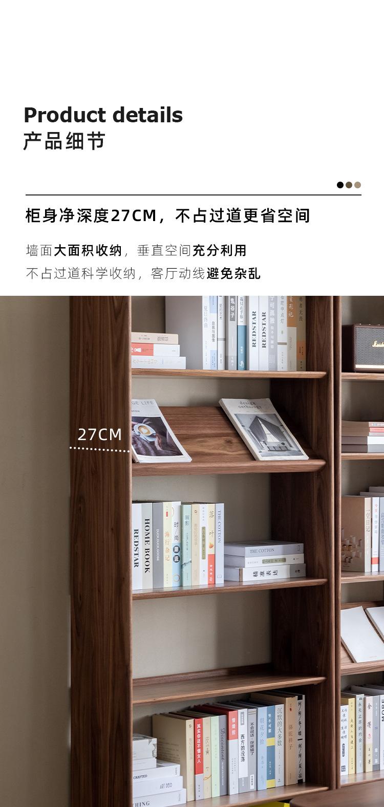 Librero de pared completa para sala de estar de nogal negro americano, estante de almacenamiento de madera maciza, librero de combinación de pie de madera de cerezo, estante de lectura, librero