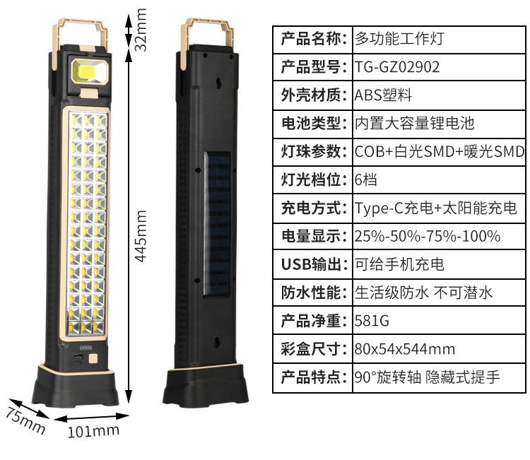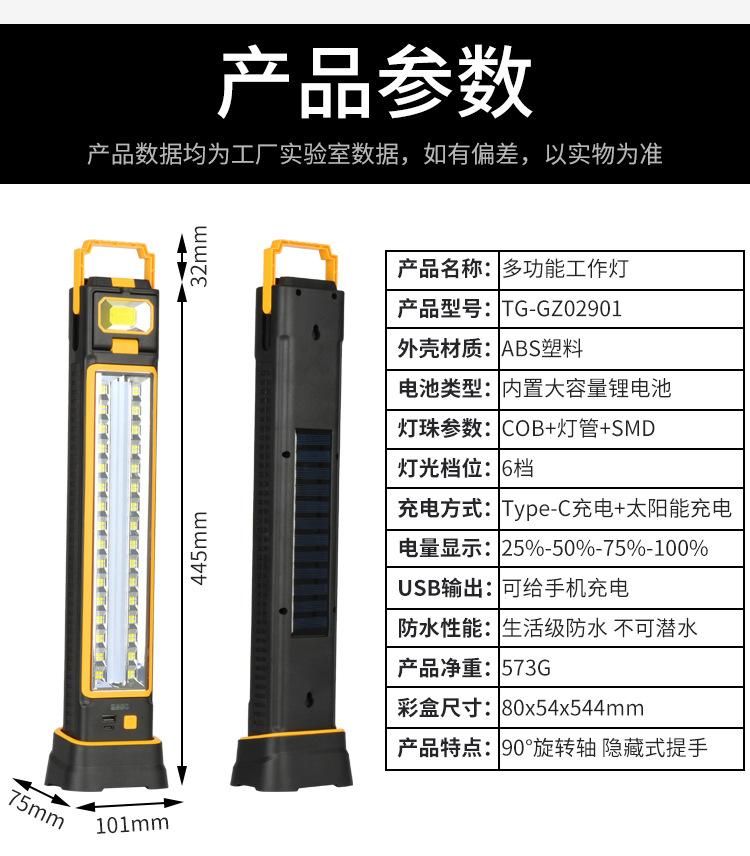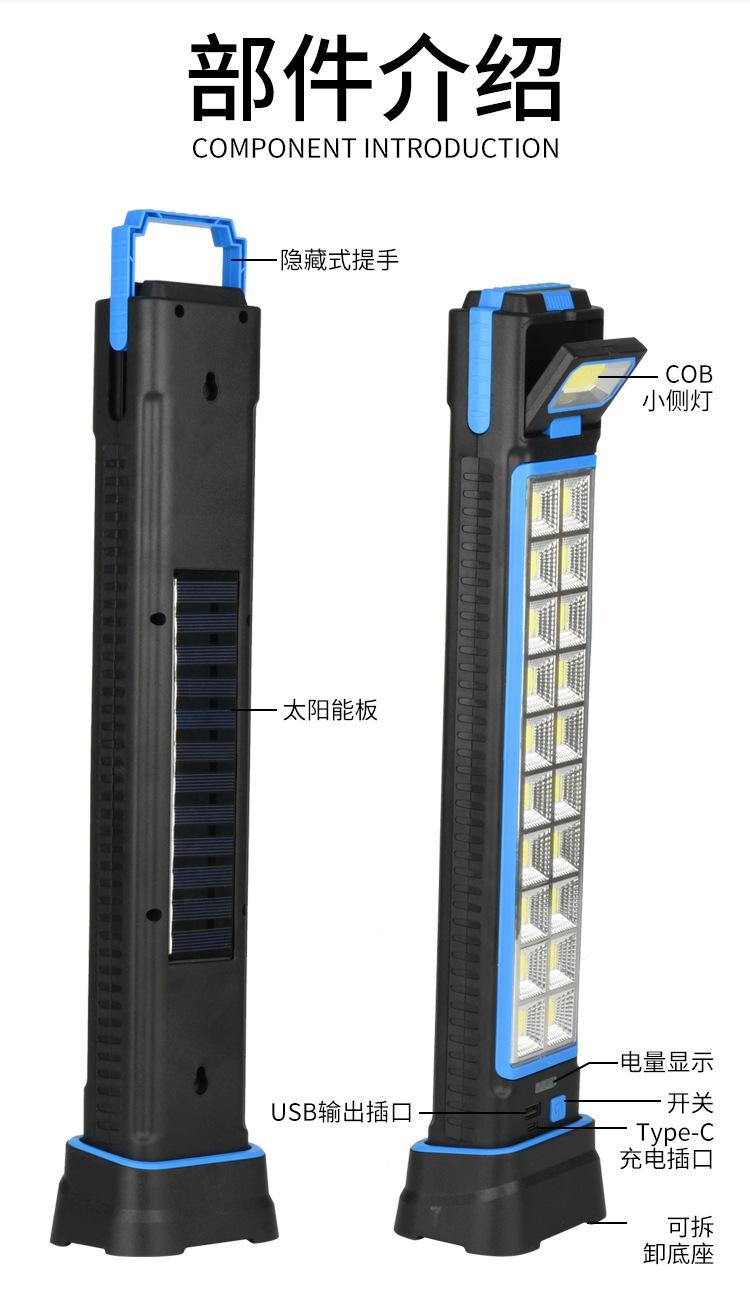 Luz de emergencia portátil para el hogar, luz de trabajo para tienda de campaña, con carga solar transfronteriza, multifunción, mantenimiento USB