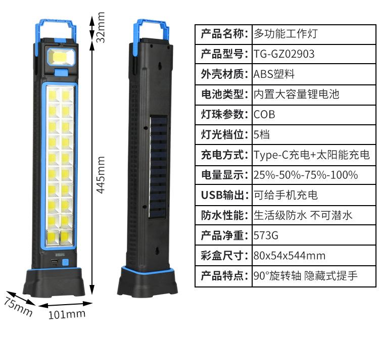 GZ02901 solar rechargeable work lamp A, GZ02902 solar rechargeable work lamp B, GZ02903 solar rechargeable work lamp C