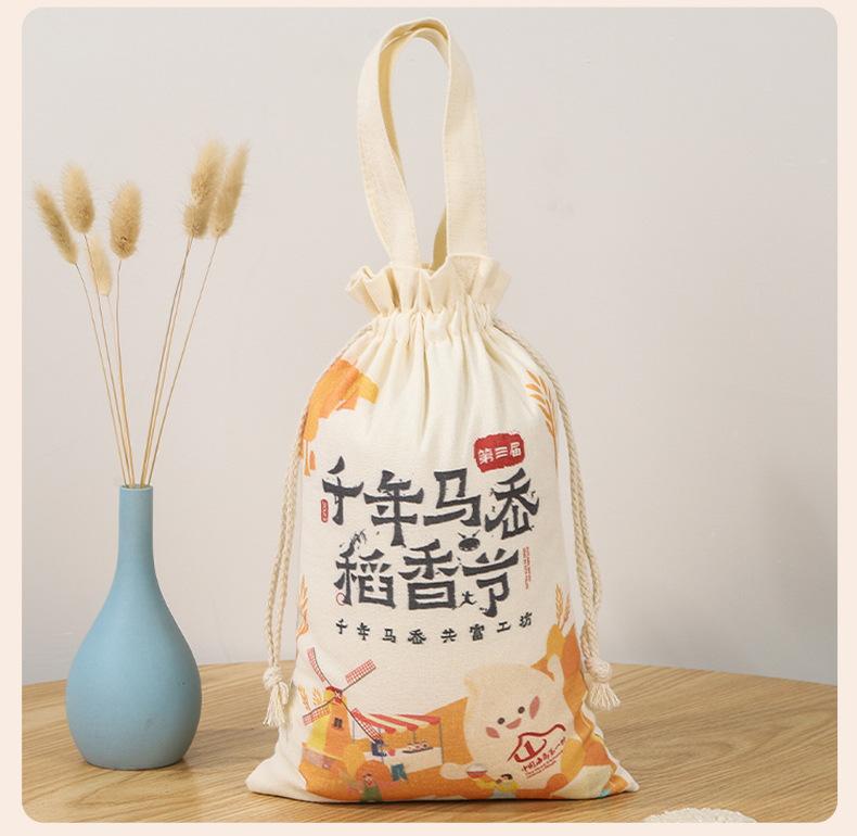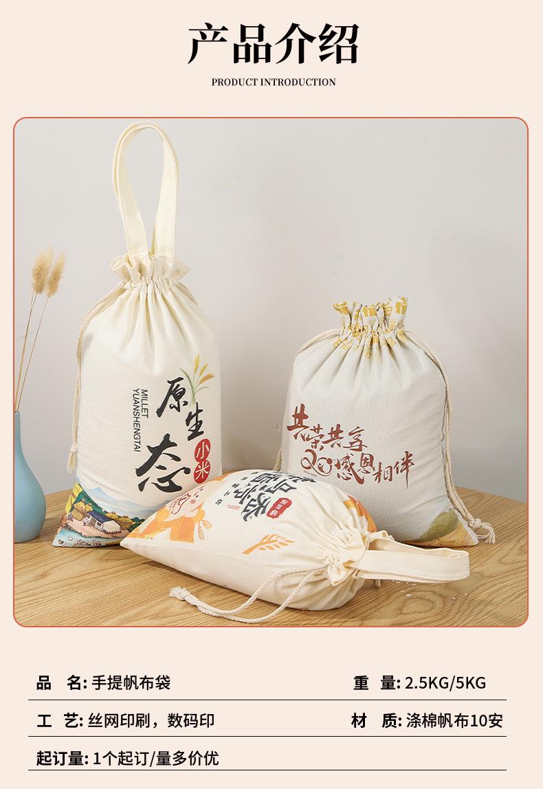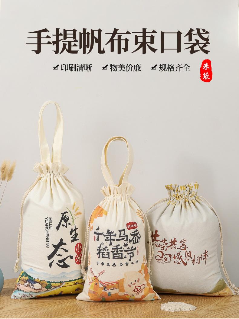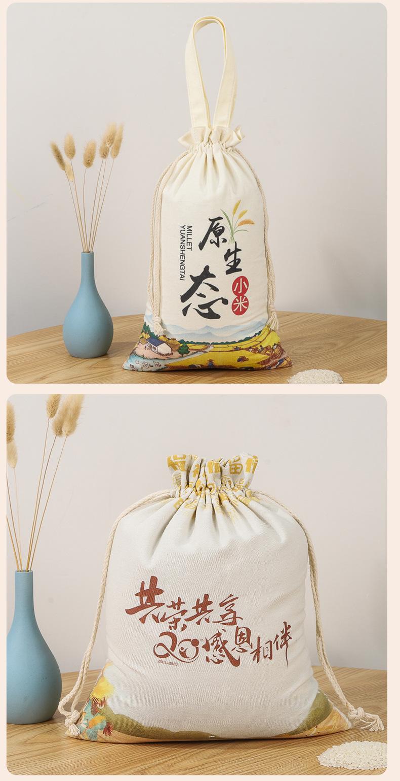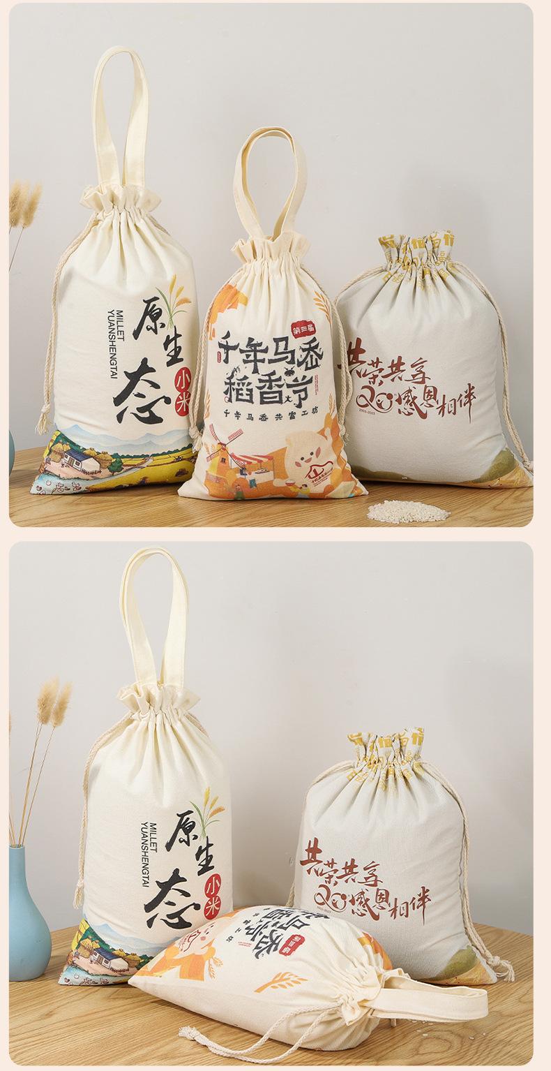 Bolsa de lona con cordón para regalo de harina de mijo, personalizada, con logotipo impreso.