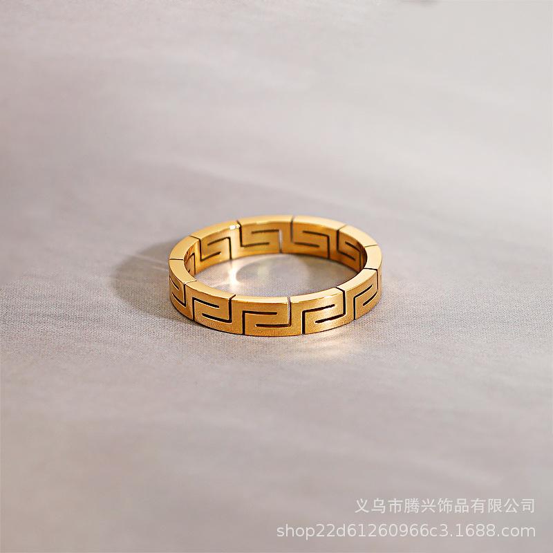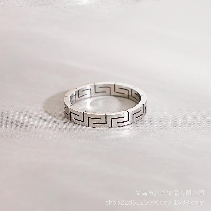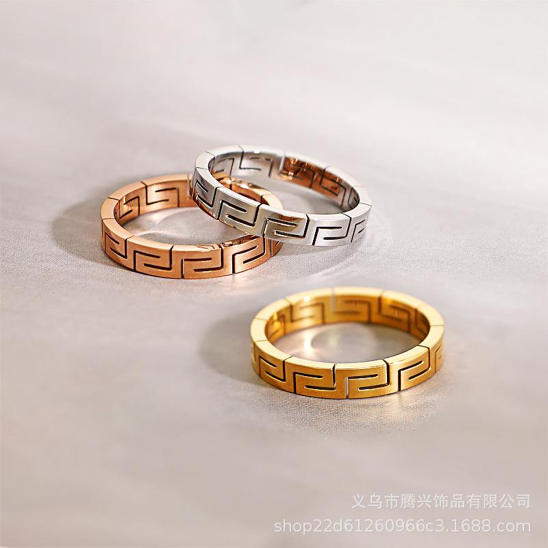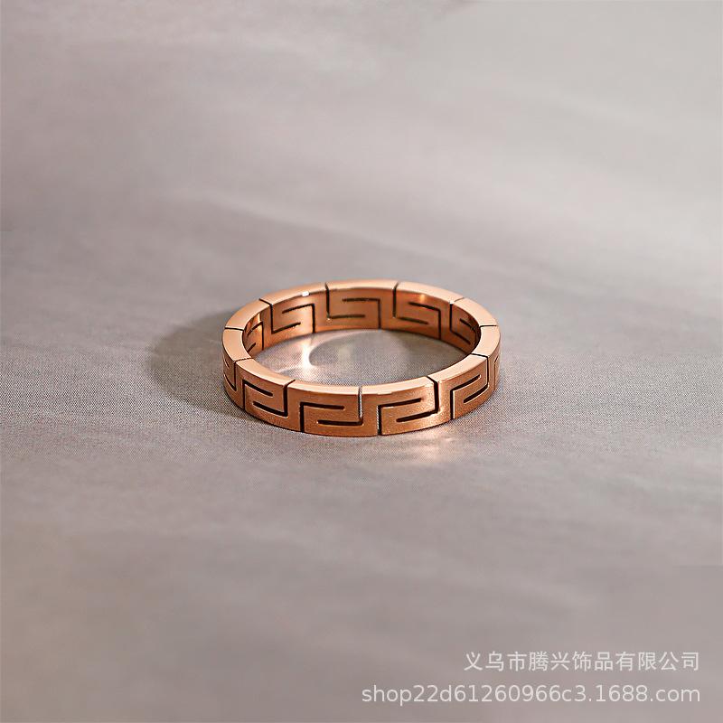 Nuevo anillo con diseño de Gran Muralla hueco transfronterizo de Amazon, moda femenina, oro rosa, personalidad, todo a juego, anillo de acero de titanio para pareja