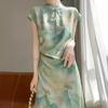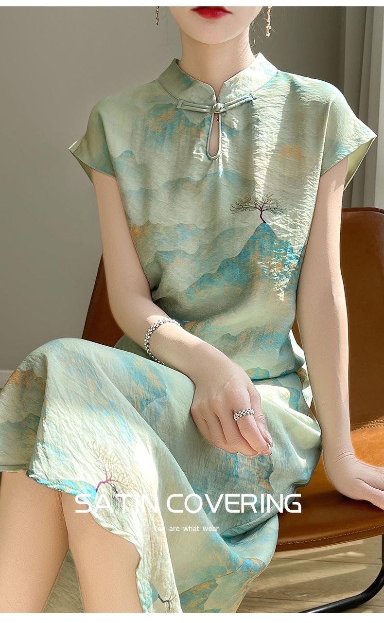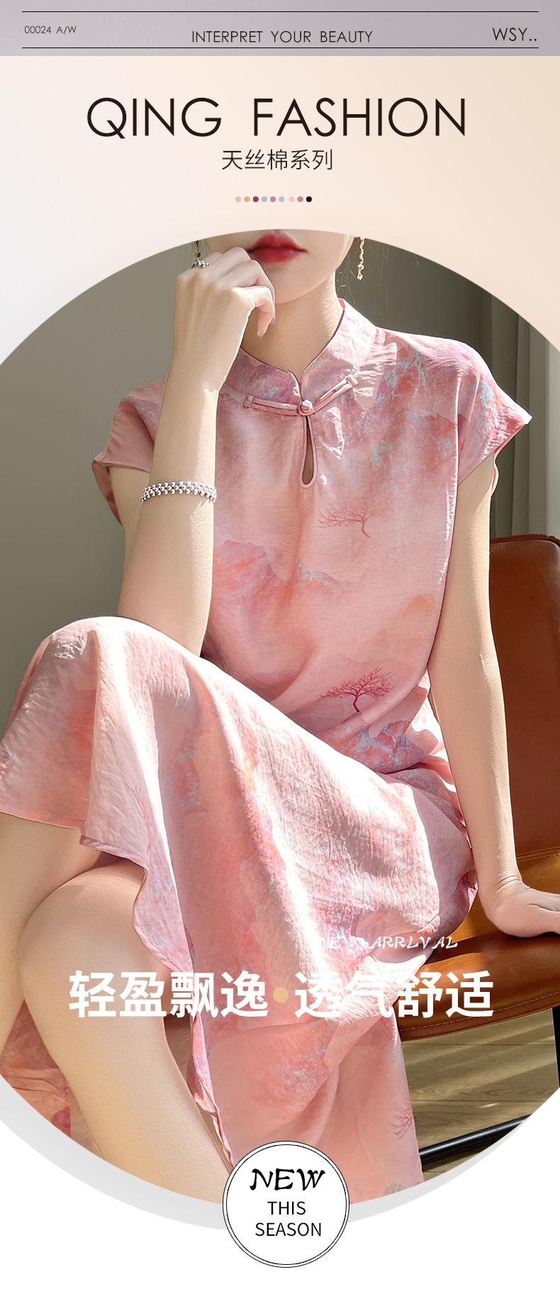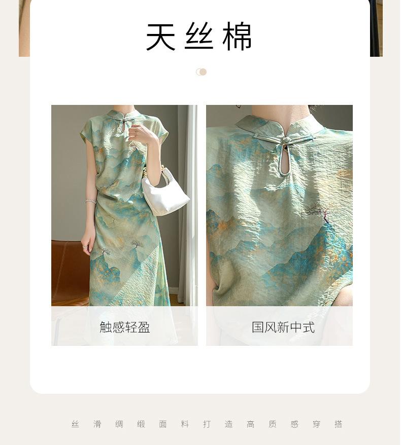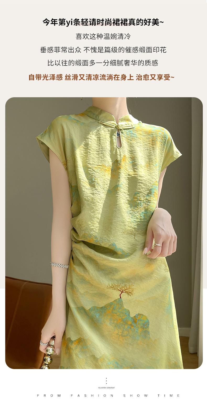 Vestido adelgazante retro de estilo nacional para mujer, primavera y verano 2024, nuevo cheongsam largo chino modificado de algodón Tens