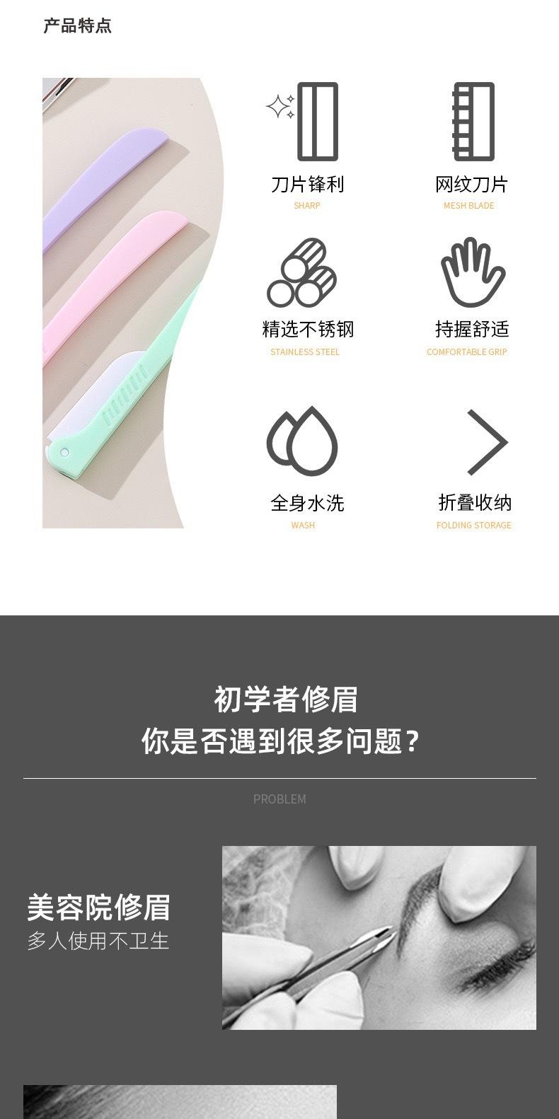 Navaja para Cejas Plegable Personalizada Macro Segura Desmontable Navaja para Cejas Portátil Anti-Arañazos Herramienta de Belleza Facial