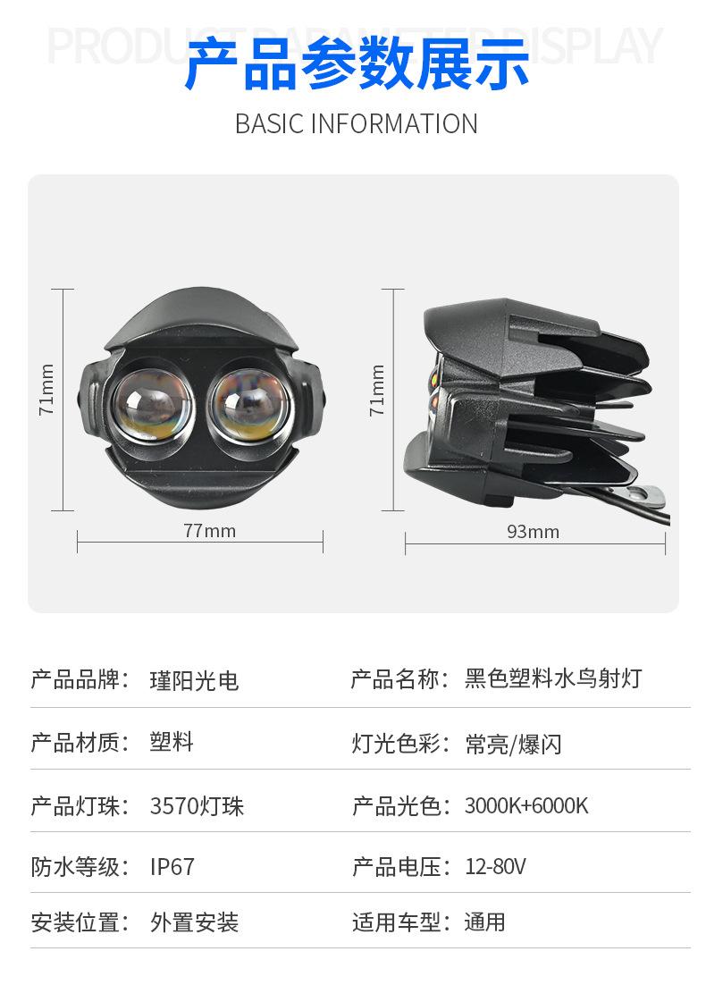 Faro LED de Plástico para Motocicleta Transfronterizo, Foco de Ave Acuática, Luz Cercana y Lejana, Faros Delanteros, Vehículo Eléctrico Externo Modificado para Motocicleta