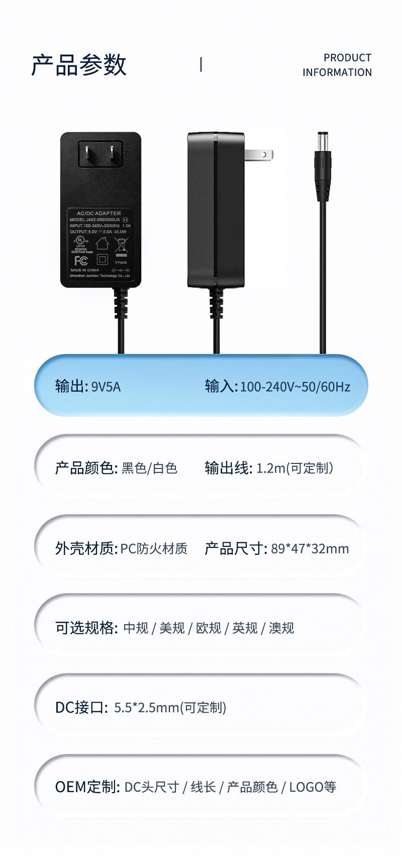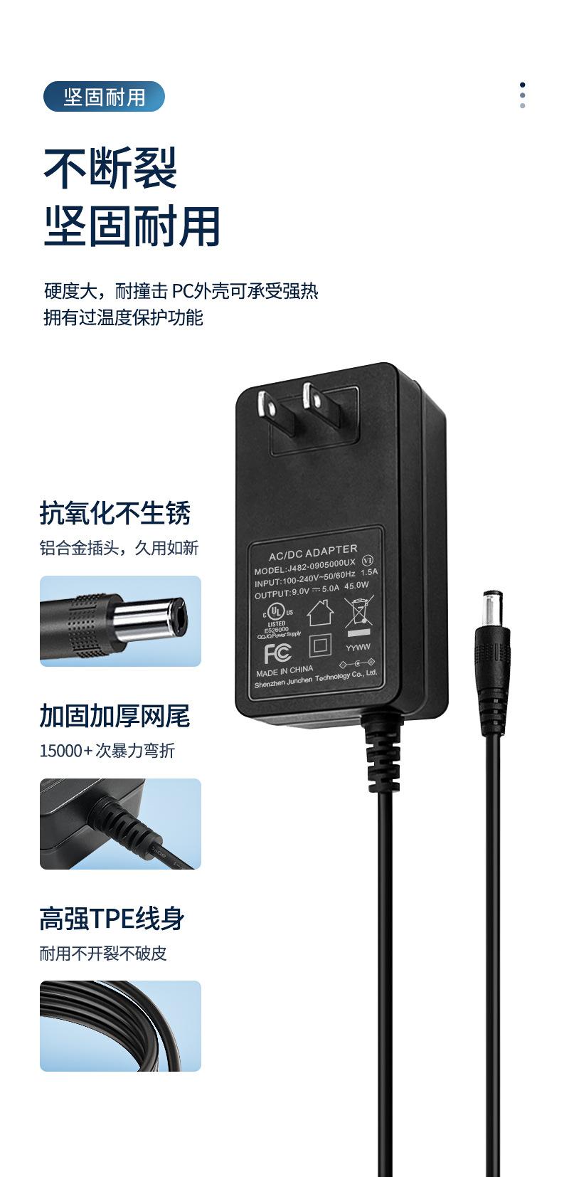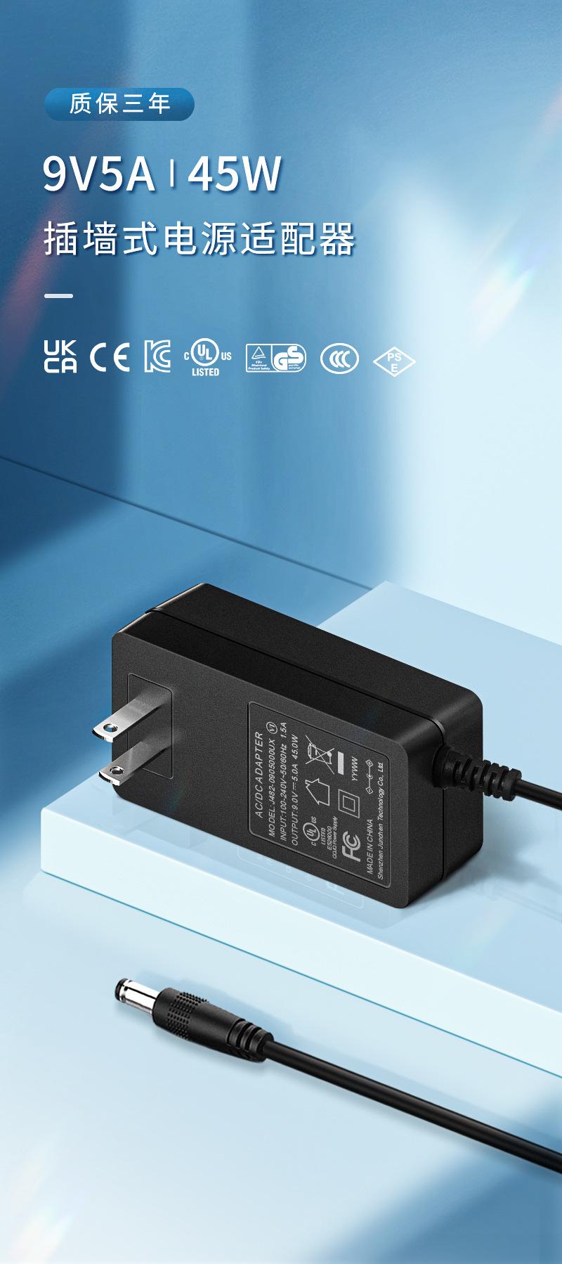 Adaptador de corriente para monitor de 9 V y 5 A, potencia de 45 W, certificación médica IEC60601cTUVusGB9706.