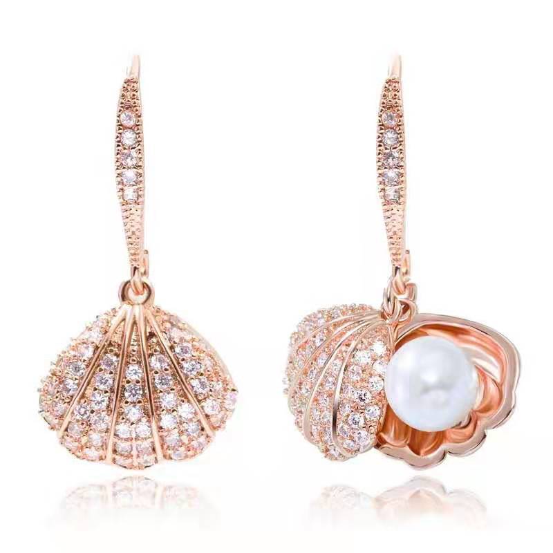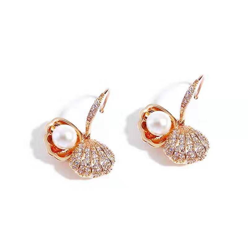 Compra Pendientes elegantes de nicho, elegantes, de estilo francés, frescos y combinables con todo, pendientes de concha roja de red para mujer. al por mayor en Joom.pro