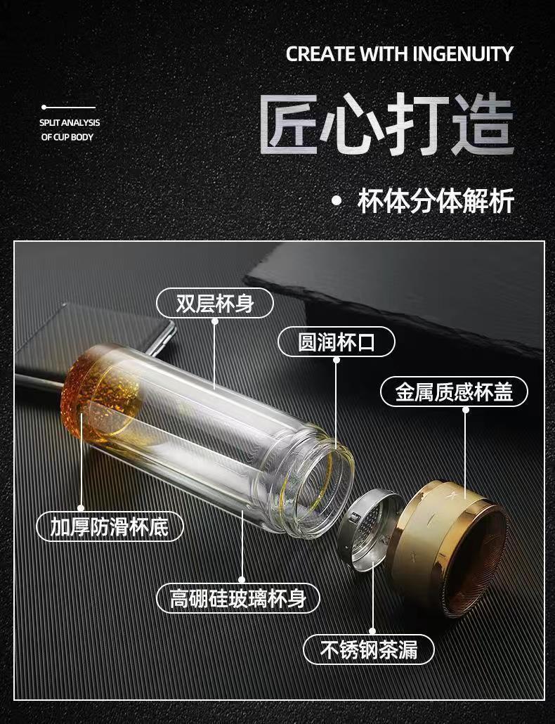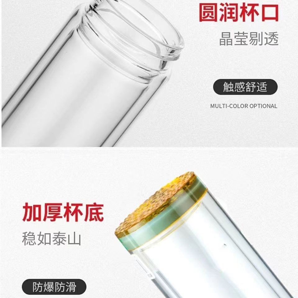 Compra Taza de vidrio de doble capa con logotipo personalizado, taza de té de vidrio de borosilicato de alta calidad, taza de agua comercial de gran capacidad para hombres al por mayor en Joom.pro